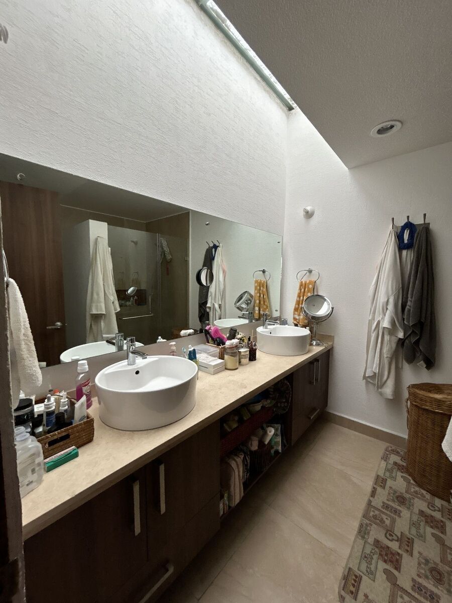 O condomínio oferece duas cabines de segurança e comodidades como academia, piscina, salão de festas, sala de jogos para crianças e áreas comuns.Casa en venta en Inspira, Paseo Dalí, Zibatá. La propiedad cuenta con tres recámaras, la principal con vestidor y baño completo, y dos recámaras secundarias que comparten baño. En la segunda planta hay un espacio destinado a oficina. En la planta baja se encuentra medio baño, cuarto de lavado, alacena, desayunador, cocina equipada, espacio para sala y comedor, y un patio con un cuarto de TV independiente. Además, cuenta con dos bodegas y estacionamiento techado para dos autos.