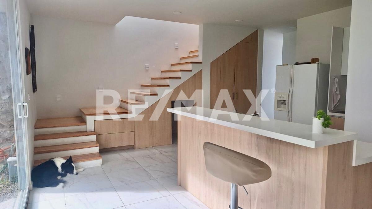 Con un gran terreno de 250 m2 y una construcción de 246 m2, esta residencia te recibe en planta baja con una cómoda sala, un amplio comedor y al fondo la vista hacia el jardín. A la par de la sala, te encuentras la cocina de concepto abierto desde de la que también puedes disfrutar de la vista hacia el gran jardin. Además en planta baja, cuentas con una recámara y baño completo.
