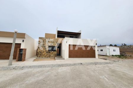 ENTRE EM CONTATO E AGENDE UMA VISITA PELO 646 596 49 43/RE/MAX La Costa Realtors.Casa recién construida con 440m2 de construcción y 600m2 de terreno en piedras negras. Diseño moderno y espacioso con 4 niveles, 3 de ellos diseñados para acceder con elevador. En el primer nivel nos encontramos con una cochera con espacio hasta para 3 vehículos. Tinaco de agua de 1100 litro, tanque estacionario. En el segundo nivel se localiza una escalera flotante con una sala de doble altura con vista a la bahía, espacio para amplía cocina integral, espacio e instalaciones para medio baño, terraza, cuarto de servicio y piso de porcelanato. En la tercera planta nos encontramos con 3 amplias recámaras con baño completo cada una y vista al mar. En el último nivel se encuentra un salón de juegos con mesa de carambola y tenis de mesa, así como un estudio o cuarto para visitas con baño completo. El patio es de 280m2, suficiente para colocar una alberca y/o salón de eventos para disfrutar con tu familia en fiestas o convivios. Sistema de vigilancia y casa inteligente. Atrevete a conocer esta casa nueva y enamorarte de su vista panorámica. PRECIO: $430,000.00 USD* PROFECO, PFC.B.E.7/005843-2022 (*Más gastos de gestión y escrituración).Newly built home with 440m2 of construction and 600m2 of land in Piedras Negras, Ensenada. Modern and spacious design with 4 levels, 3 of them designed for elevator access. On the first level, we find a garage with space for up to 3 vehicles. 1100-liter water tank, stationary tank. On the second level, there is a floating staircase with a double-height living room overlooking the bay, space for a spacious kitchen, space and facilities for a half bathroom, terrace, service room, and porcelain tile flooring. On the third floor, we find 3 spacious bedrooms, each with a full bathroom and ocean view. On the last level, there is a game room with a billiard table and ping pong, as well as a study or guest room with a full bathroom. The patio is 280m2, large enough to accommodate a swimming pool and/or an event hall for enjoying family parties or gatherings. Dare to discover this new house and fall in love with its panoramic view. Surveillance System and Smart Home.