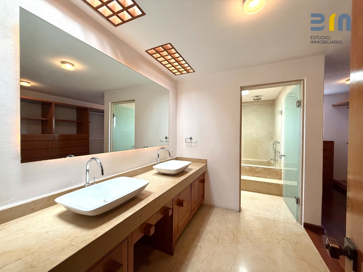 Asentada sobre una barranca, con vista arbolada y absoluta privacidad. Proyecto arquitectónico de la escuela del arquitecto Luis Barragán (realizada por el arquitecto José Ignacio de Abiega); desarrollado en medio niveles, lo que la convierte en una casa muy cómoda de vivir, con una circulación central muy eficiente. A nivel de la calle acceso a sala comedor, cocina, con acceso inmediato a terraza y jardín.