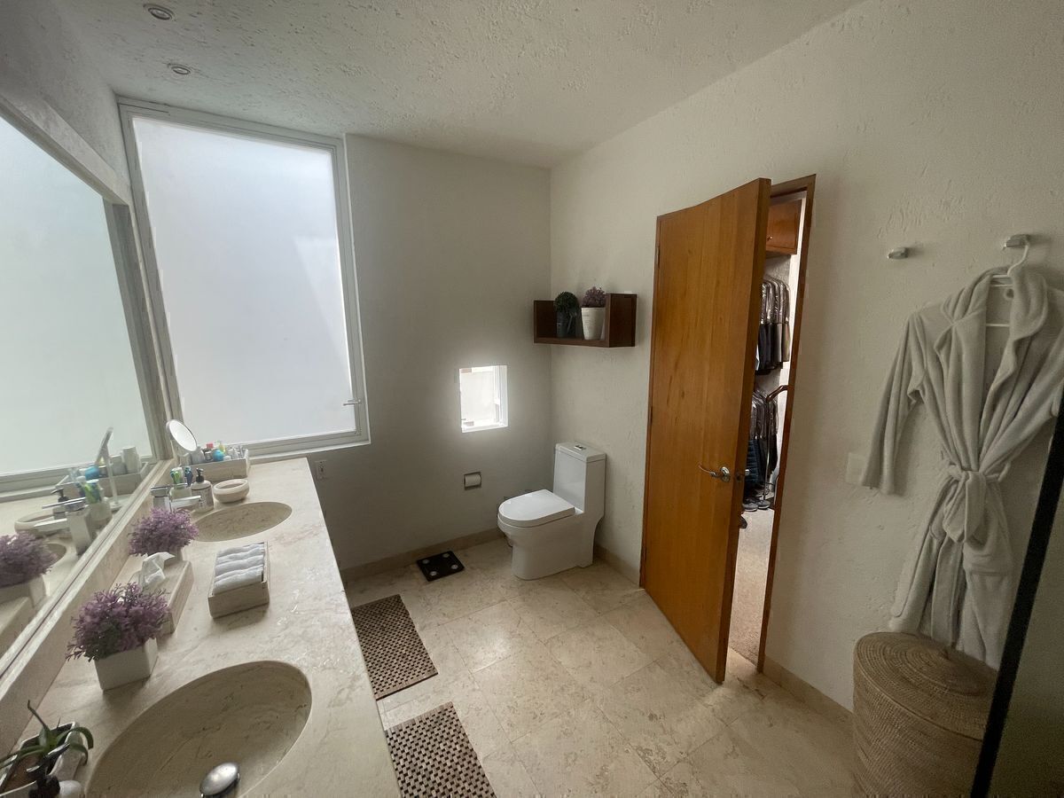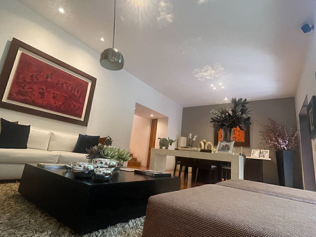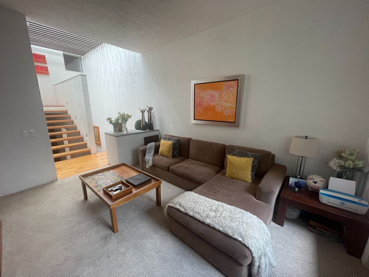 Consulte nosso aviso de privacidade em nosso site.""Extraordinaria Casa en Venta en un residencial muy exclusivo de La Loma Santa Fe, diseñado por el prestigiado arquitecto Legorreta; propiedad con 346 m2 de construcción, cuenta con amplia terraza o jardín a nivel de la estancia, sala y comedor con pisos de madera, techos de gran altura que le da esa amplitud e iluminación a esta preciosa casa, cocina cerrada con amplia alacena y acceso desde el estacionamiento para facilitar el manejo de la despensa, cuarto de servicio y área de lavado con amplios espacios; junto a la estancia contamos un unas escaleras, que mitad de piso contamos un estudio u oficina, que nos da la privacidad para trabajar ahora en estos tiempos que el Home office ya es tan común, posterior a esto, encontramos un family room amplio y con un librero que nos permite organizar nuestras fotografías, libros y la gran pantalla para reunir a la familia y al rededor de esta área encontramos 3 habitaciones donde cada una cuenta con su baño completo y vestidor, además que la habitación principal cuenta con vestidor de gran tamaño.