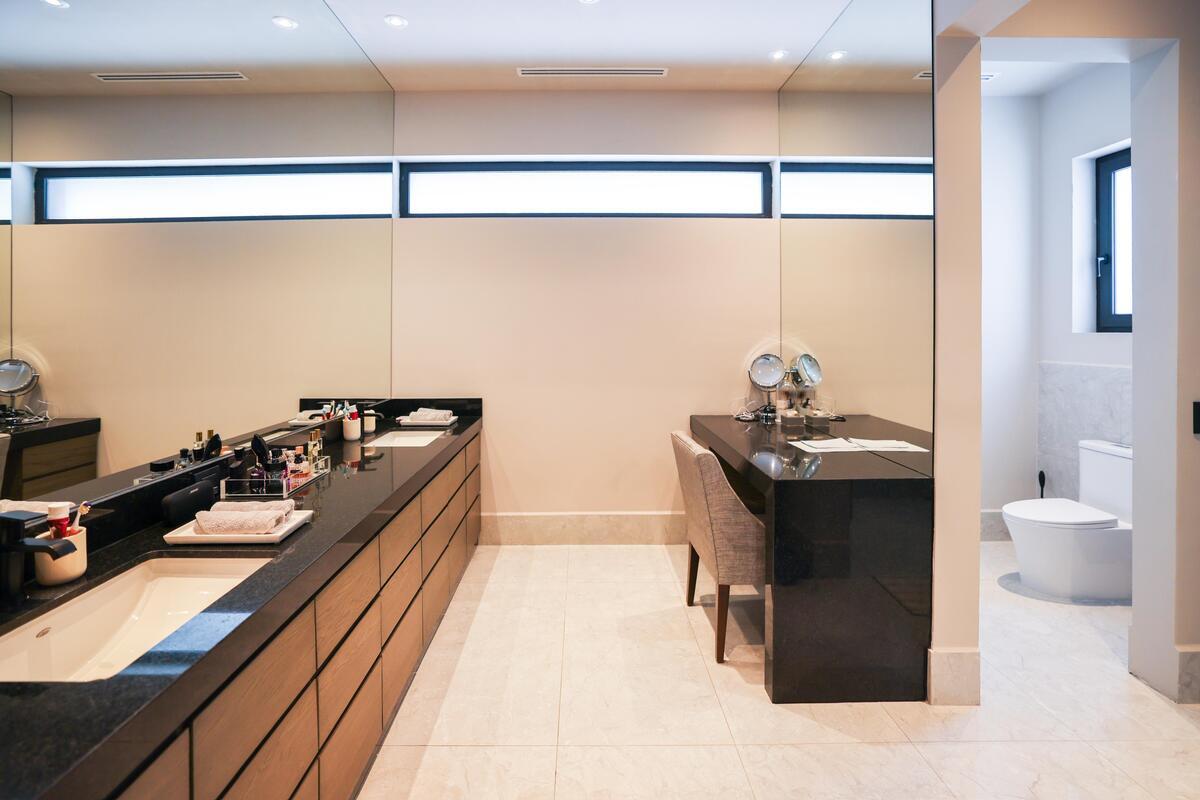 2º andar: 3 amplos quartos, cada um com closet walk-in de bom tamanho e banheiro completo. Ampla sala de estar e closet de roupas de cama. O quarto principal com terraço privativo.