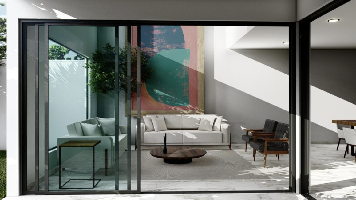 •Cristal de 6mm en ventanas Aluminio de 3” nacional color negro para ventanas fijas y corredizas