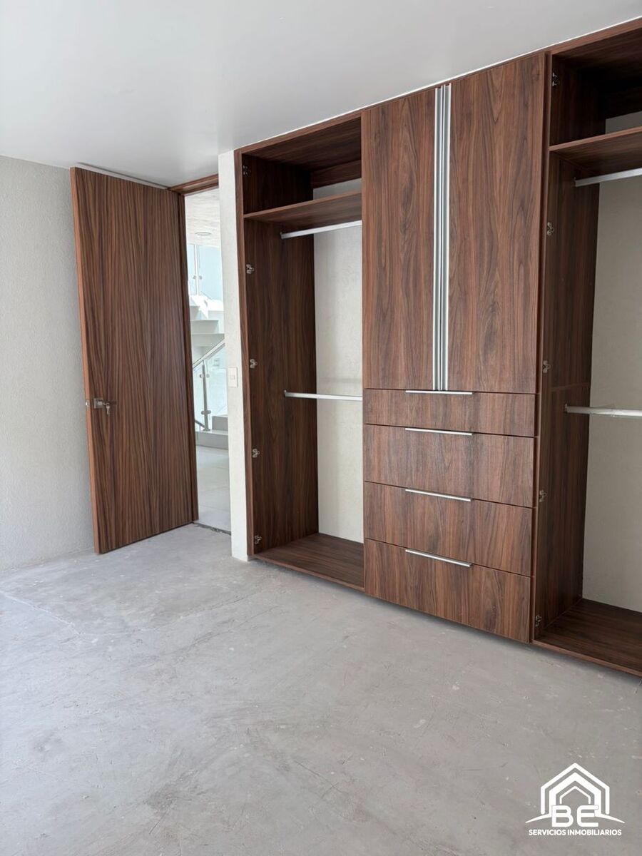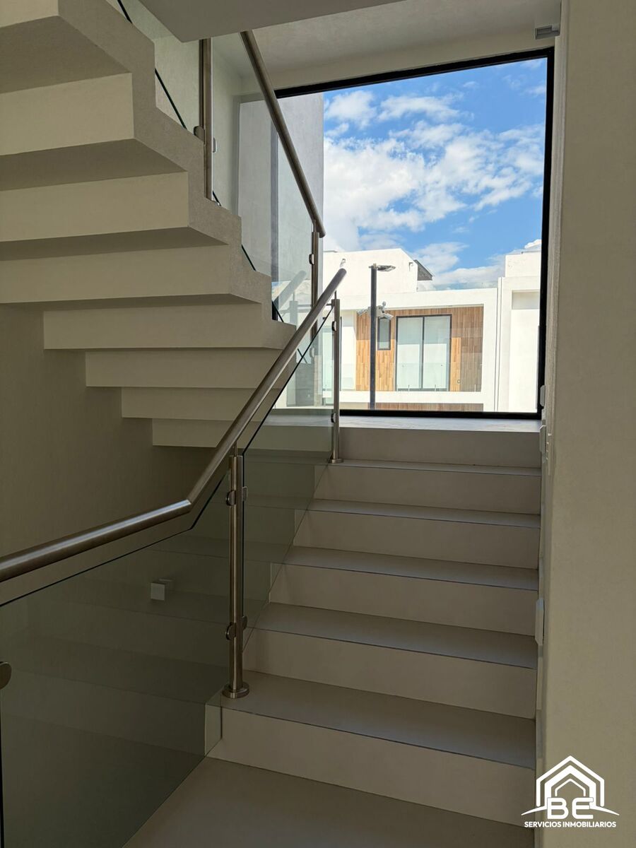 A estrenar y dentro de Fraccionamiento Privado con Seguridad 24/7, Casa Club con: alberca, gimnasio, salón de eventos, sala de juntas y áreas de coworking, juegos infantiles y áreas verdes. Moderna y construida en 3 niveles tiene: PB; 4 lugares de estacionamiento techados, cuarto de servicio con baño completo (ideal también como bodega), 2 cisternas: una de 7,000 L y otra para captación pluvial, entrada principal con chapa electrónica, baño de visitas. En 1er Nivel: amplia estancia para sala y comedor, cocina integral moderna, terraza con vista y conexión a un pequeño jardín privado. 2o Nivel: 3 recámaras con baño completo, la principal con vestidor, recámaras secundarias con clóset. 3er Nivel: Espaciosa área de lavado con instalaciones para lavadora y secadora, Roof garden privado con baño — ideal para reuniones, asados o simplemente disfrutar del atardecer.