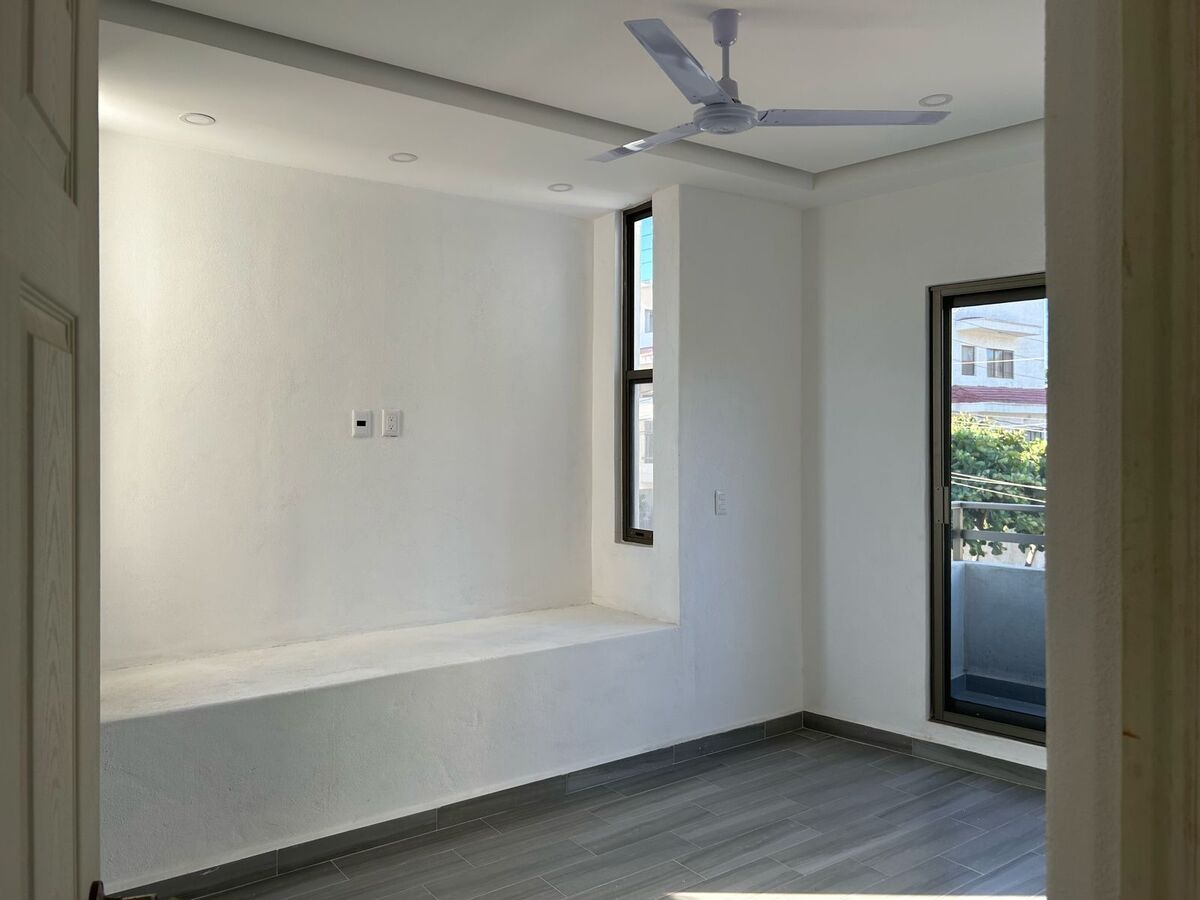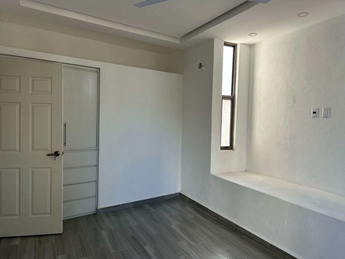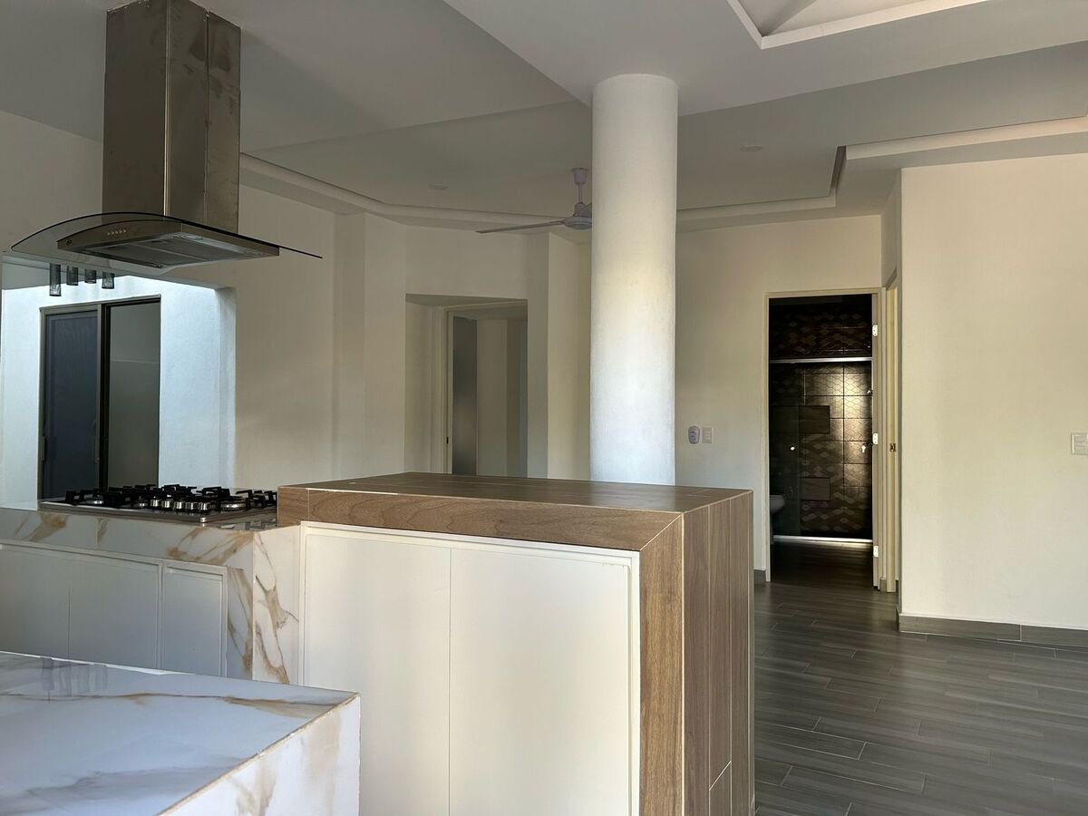 Departamento secundario: cocina integral, sala, comedor, dos recámaras con closet, dos baños completos y lavandería.