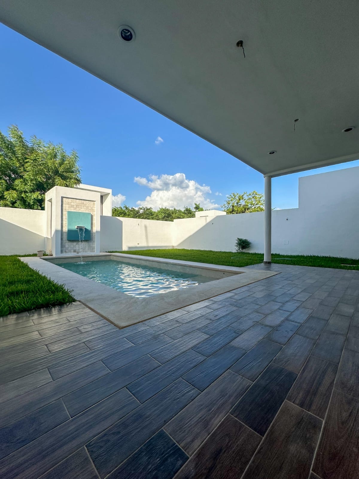 PET PARKAprovecha esta oportunidad obtener la casa que siempre has soñado, perfectamente distribuida en 2 plantas en un gran terreno de 308 m2. La casa cuenta con sala-comedor abiertos con salida a su lindo jardín trasero con piscina, cocina equipada con barra desayunadora de granito, alacena y carpintería, 3 recamaras con baño completo y área de vestidor, área de lavado techada, espacio para closet de blancos y garaje para dos autos. Ubicada en lindo fraccionamiento cerrado con las grandes amenidades con todo lo que imaginaste y seguridad privada 24/7.