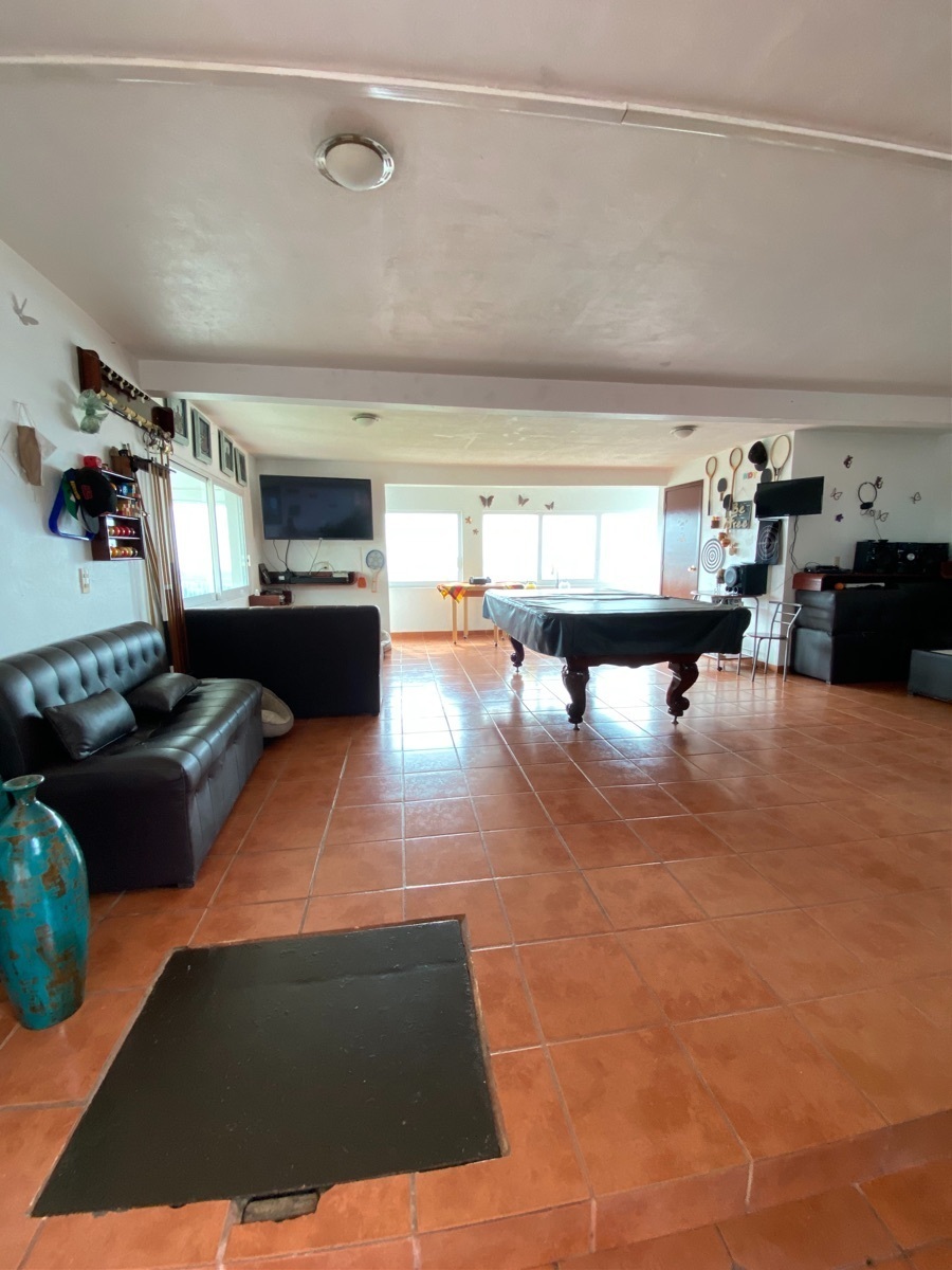 Terraza con área de asadores y un espacio perfecto para jugar al billar.