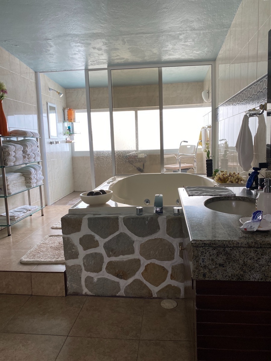 Recámara principal con un generoso vestidor, terraza privada con una vista impresionante a la ciudad, baño completo y jacuzzi.