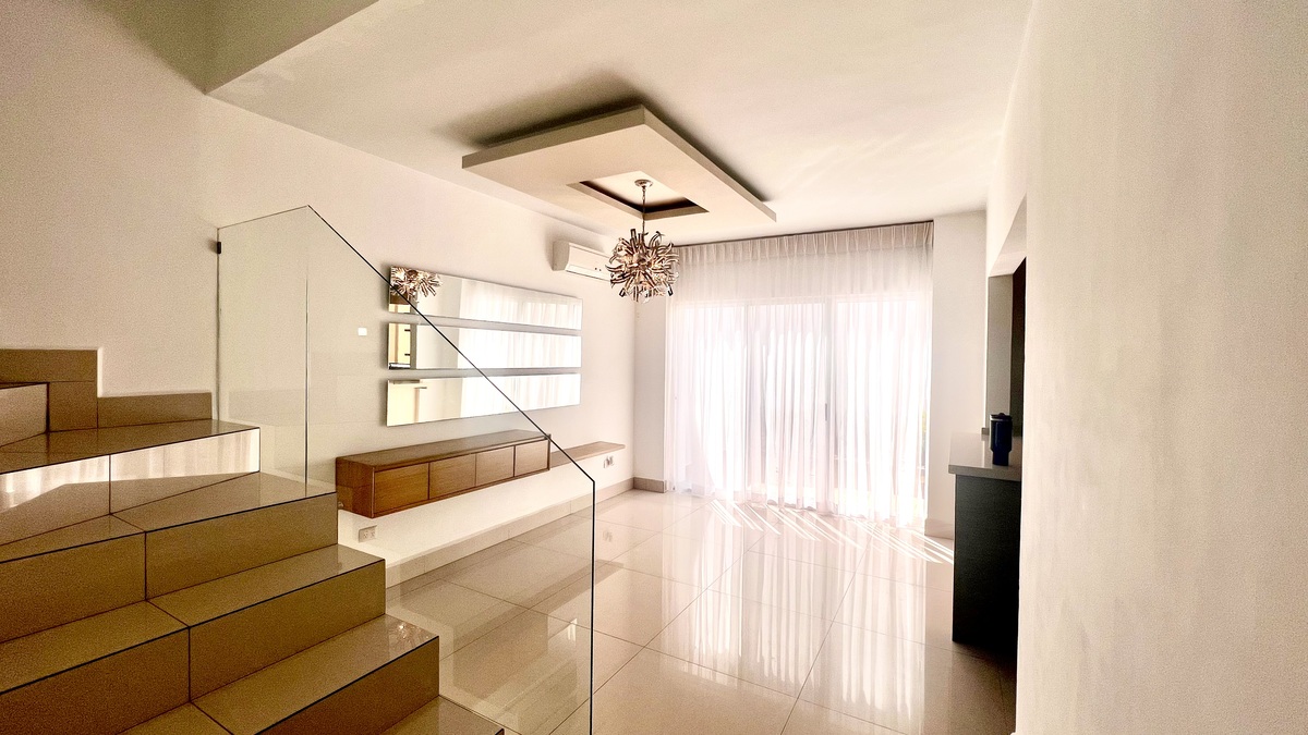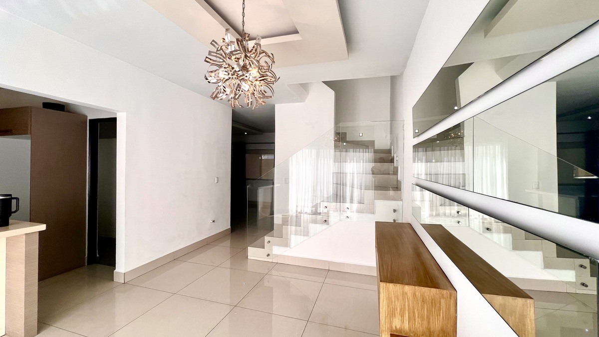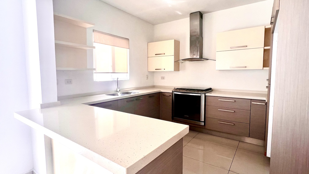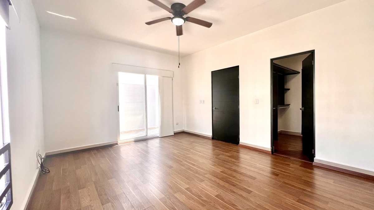 💥Totalmente Equipada con un estilo moderno y acogedor‼️ con portón eléctrico, puerta de seguridad en acceso principal, cocina integral con estufa y campana, mueble de madera y espejo empotrado en el comedor, barandal de cristal templado en escalera, 2 closet en recámaras secundarias, vestidor en recámara principal, canceles de vidrio templado en los dos baños, tapices en muros, luminarias decorativas, 2 abanicos de techo, 5 minisplits, boiler de paso, persianas y/o cortinas en todas las ventanas, pisos de porcelanato y puertas de madera.