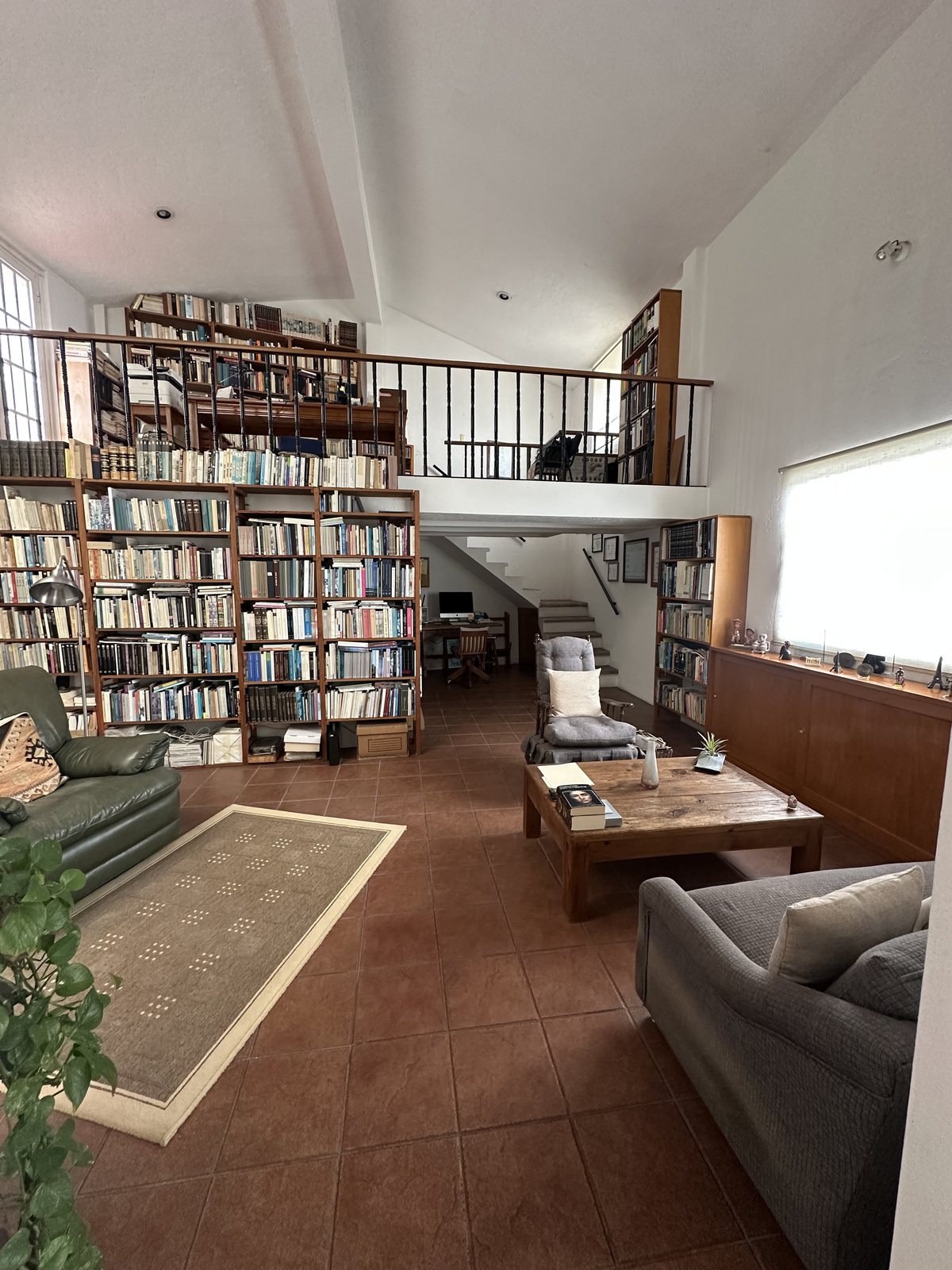 Escritório espaçoso com mezanino e acesso ao telhado