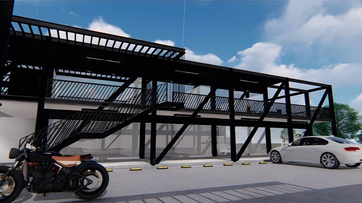 Possui dois quartos, sendo o principal com closet, dois banheiros completos, sala, sala de jantar, escritório no térreo, cozinha integrada com balcão, equipada com bancada de granito, pia dupla, fogão, exaustor, jardim, garagem para dois carros, porta principal na residência com fechadura inteligente.