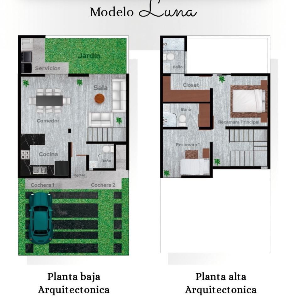 Cuenta con dos recámaras la principal con closet, dos baños completos, sala, comedor, estudio en pb, cocina integral con barra, equipada con cubierta de granito, doble tarja, estufa, extractor de aire, jardín, cochera para dos autos, puerta principal en las residencia con chapa inteligente.