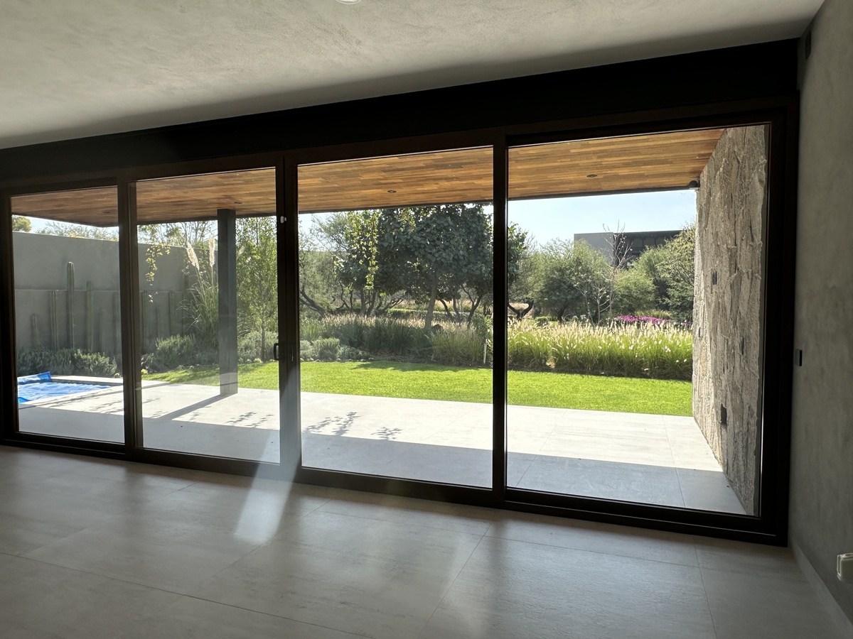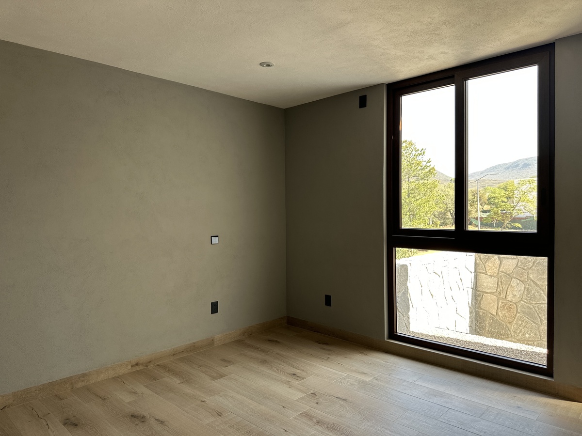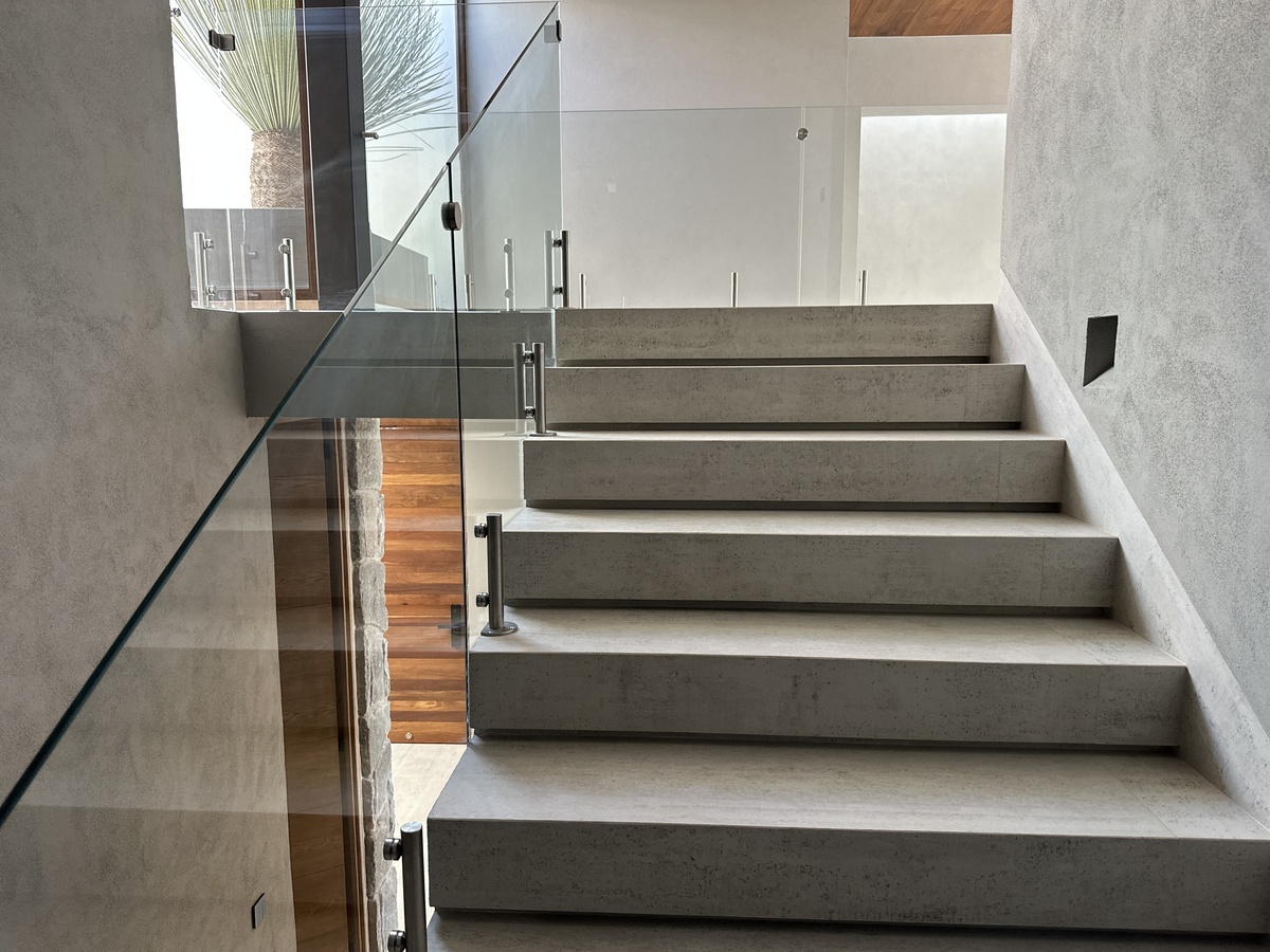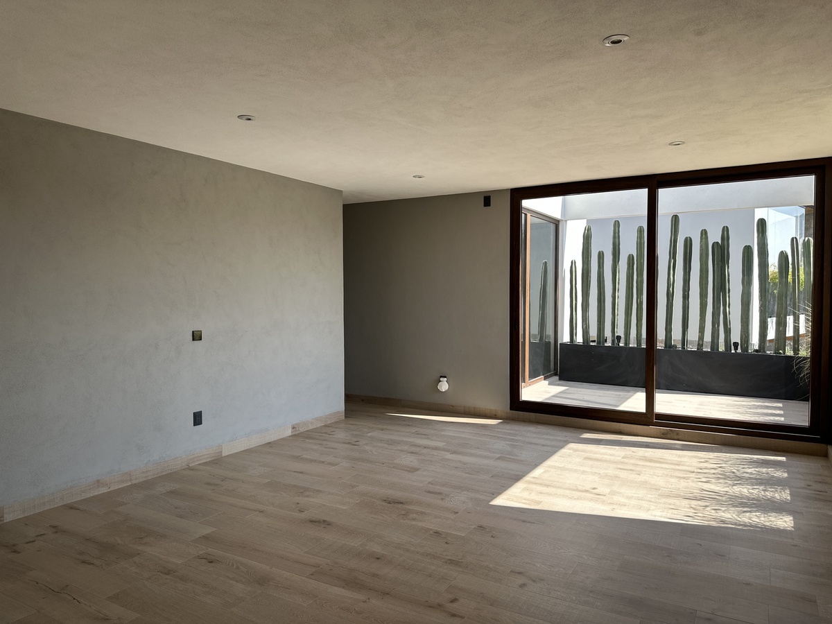 En cuanto a detalles, la casa presenta pisos de porcelanato de gran formato, una escalera de encino con barandal de vidrio templado.