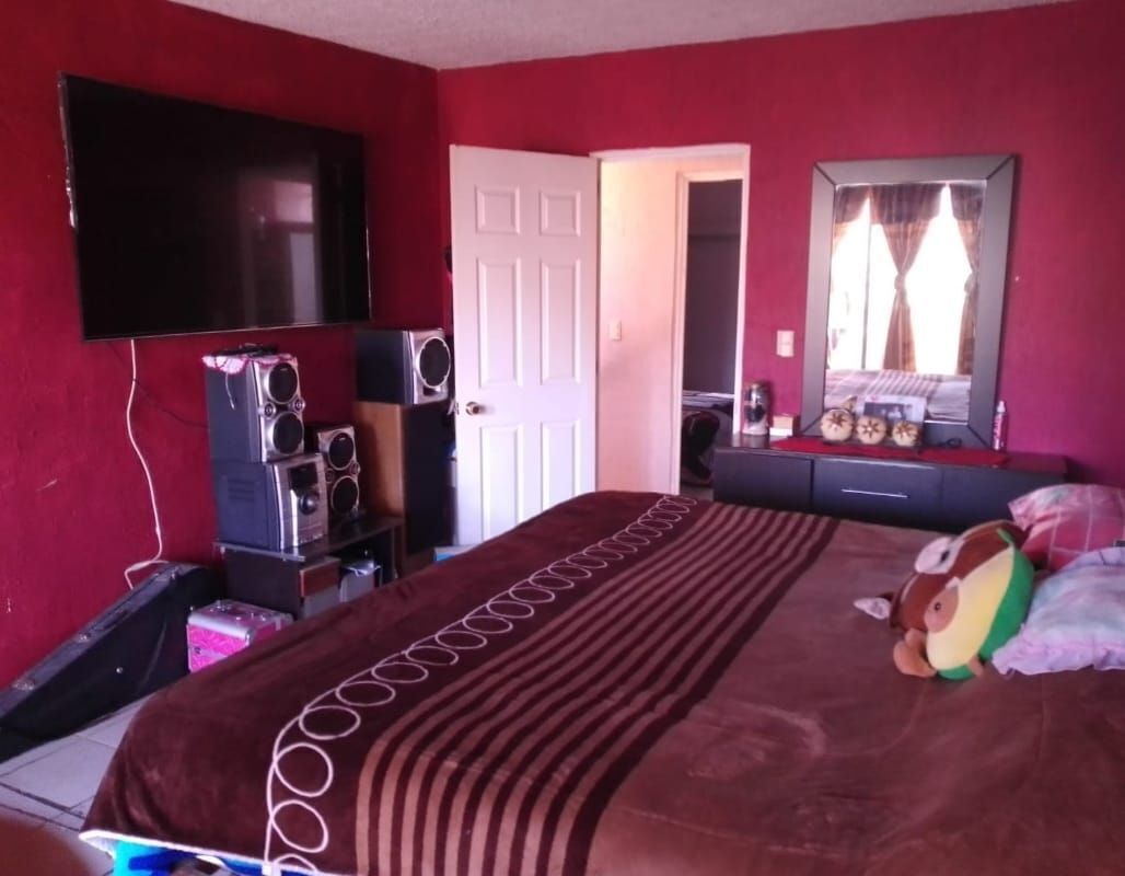A casa possui no térreo uma garagem coberta, sala de estar-jantar, cozinha integrada com fogão, estudo com armário, lavabo, pátio de serviço, no andar superior possui 3 quartos com armário, o principal com terraço coberto.Casa en venta en Villas del Pedregal ampliada, frente a área verde.