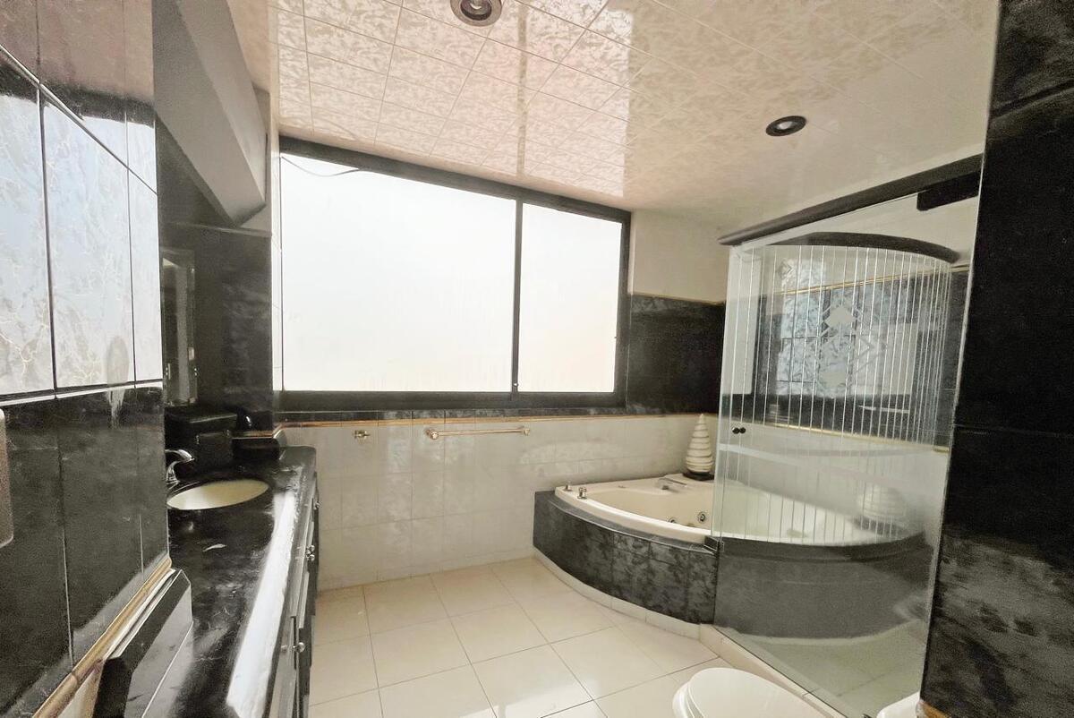 A propriedade conta com estacionamento para quatro veículos. Está situada em uma rua fechada com acesso controlado e segurança 24/7, garantindo privacidade e segurança. A casa parece nova devido à manutenção impecável.