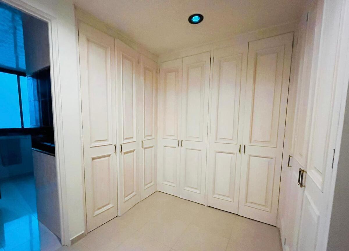 No andar térreo, encontra-se a área social: salas de estar e jantar independentes, uma cozinha ampla e funcional com uma área de café da manhã que se integra harmoniosamente a um jardim interno, um bar e um lavabo para visitantes. No primeiro andar, há três quartos com closet, uma sala de TV e dois banheiros completos; o quarto principal tem uma vista espetacular para o parque. No terceiro nível, há um quarto adicional com banheiro completo e vista panorâmica para o parque —ideal como escritório, estúdio ou quarto independente— e um terraço; além do quarto de serviço.