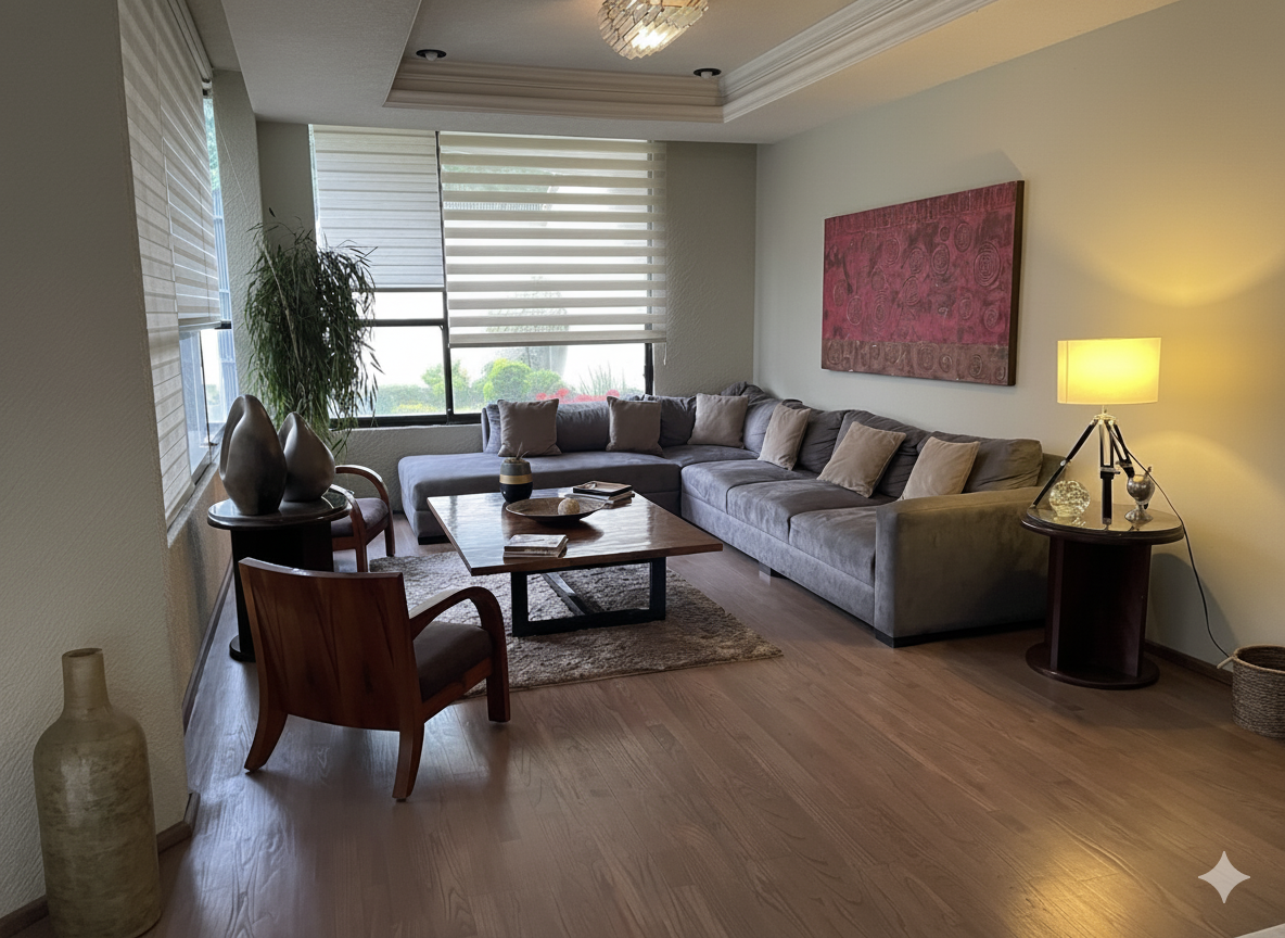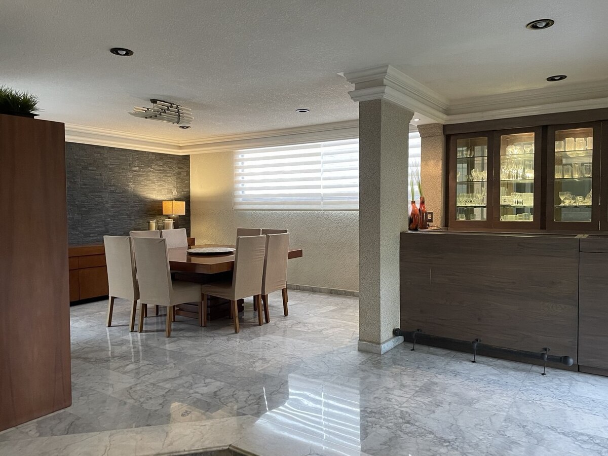 Esta casa exclusiva e espaçosa, localizada em Paseos de Taxqueña, Coyoacán, combina conforto, elegância e funcionalidade em três níveis perfeitamente distribuídos, de frente para um belo parque arborizado que oferece vistas panorâmicas.