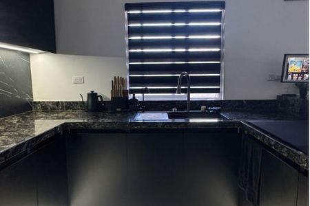 No andar de cima com 4 quartos, 2 banheiros, sala de estar, lavanderia, cozinha grande e terraço.