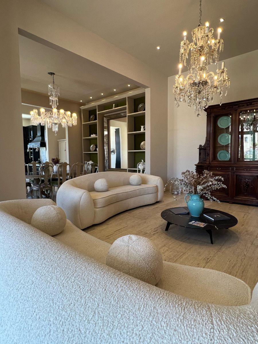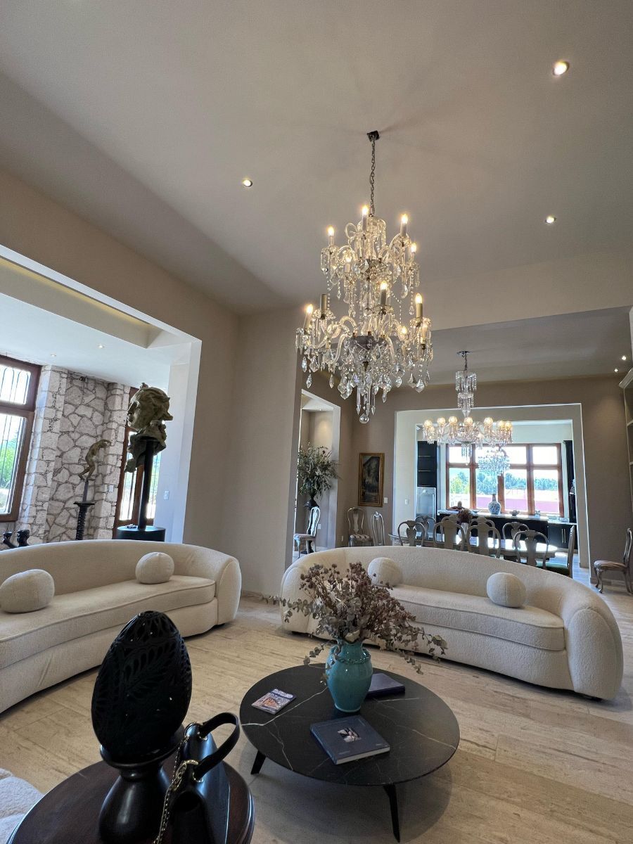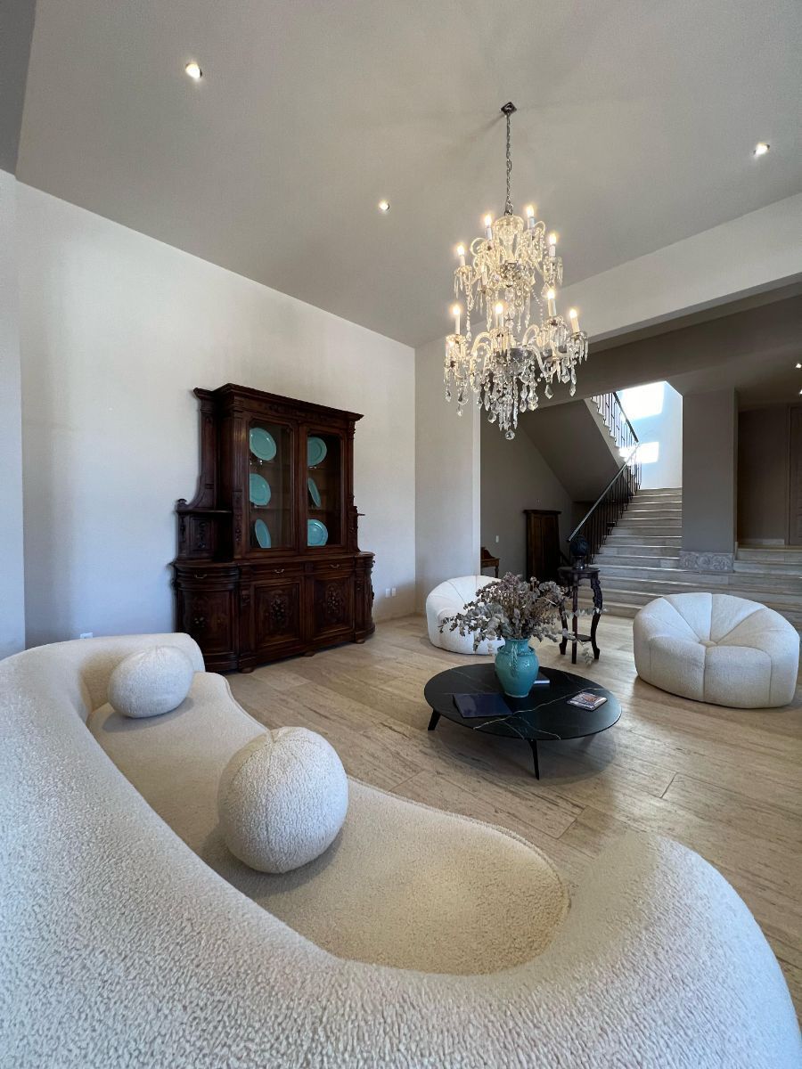 Grandes ventanas inundan el interior con luz natural, iluminando las líneas elegantes y la estética minimalista del hogar. Los techos altos añaden una sensación de amplitud, mientras que los acentos decorativos cuidadosamente seleccionados proporcionan calidez y carácter a cada habitación.