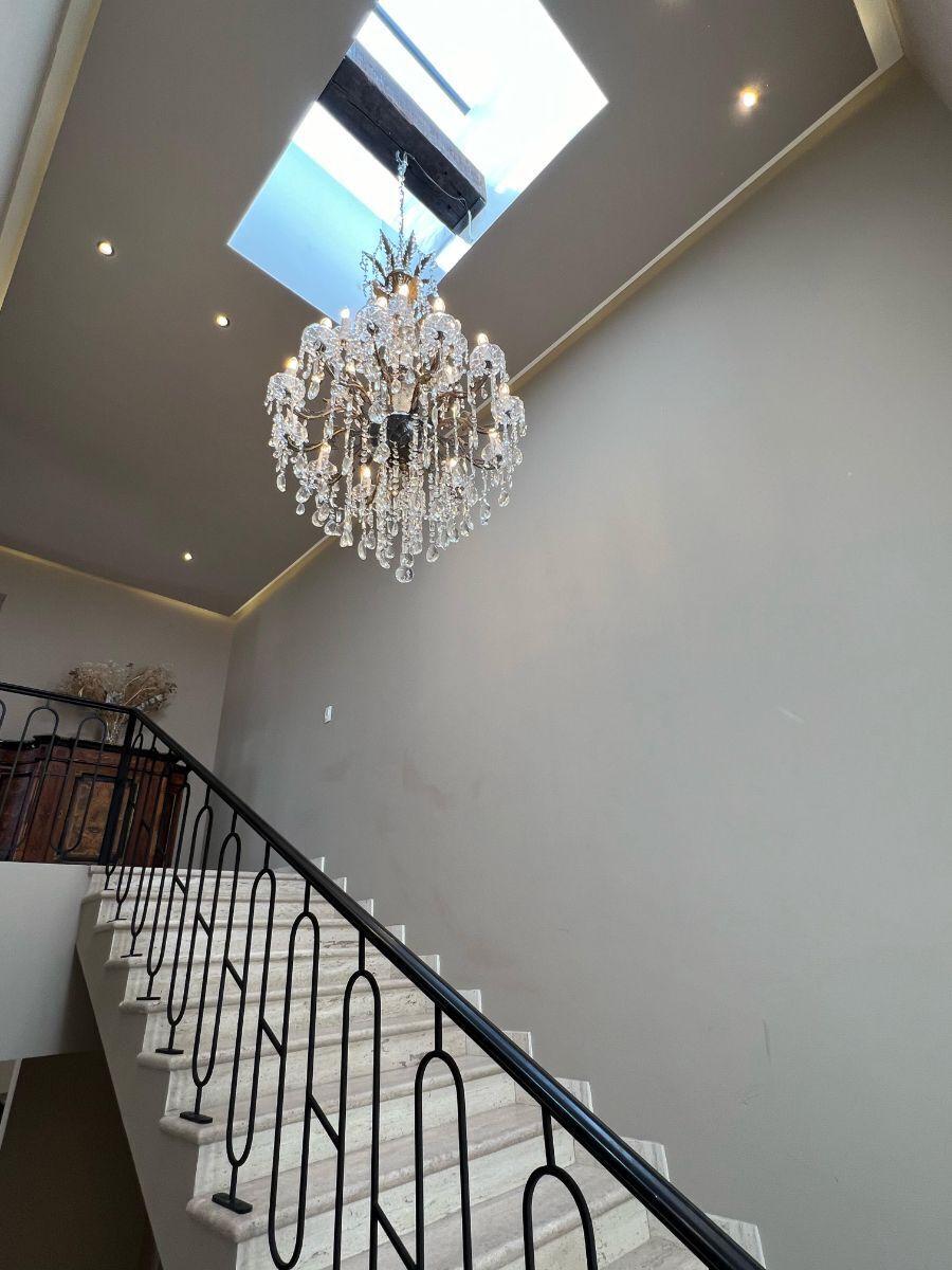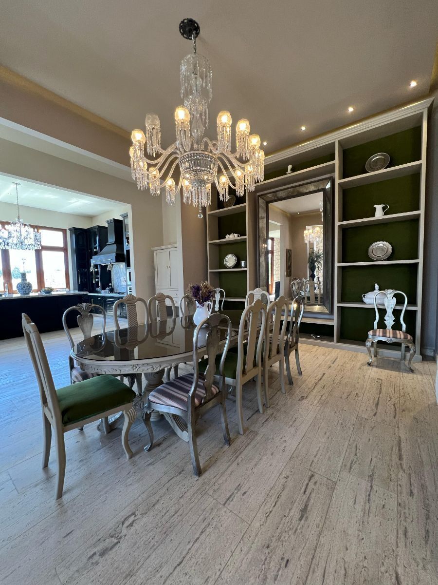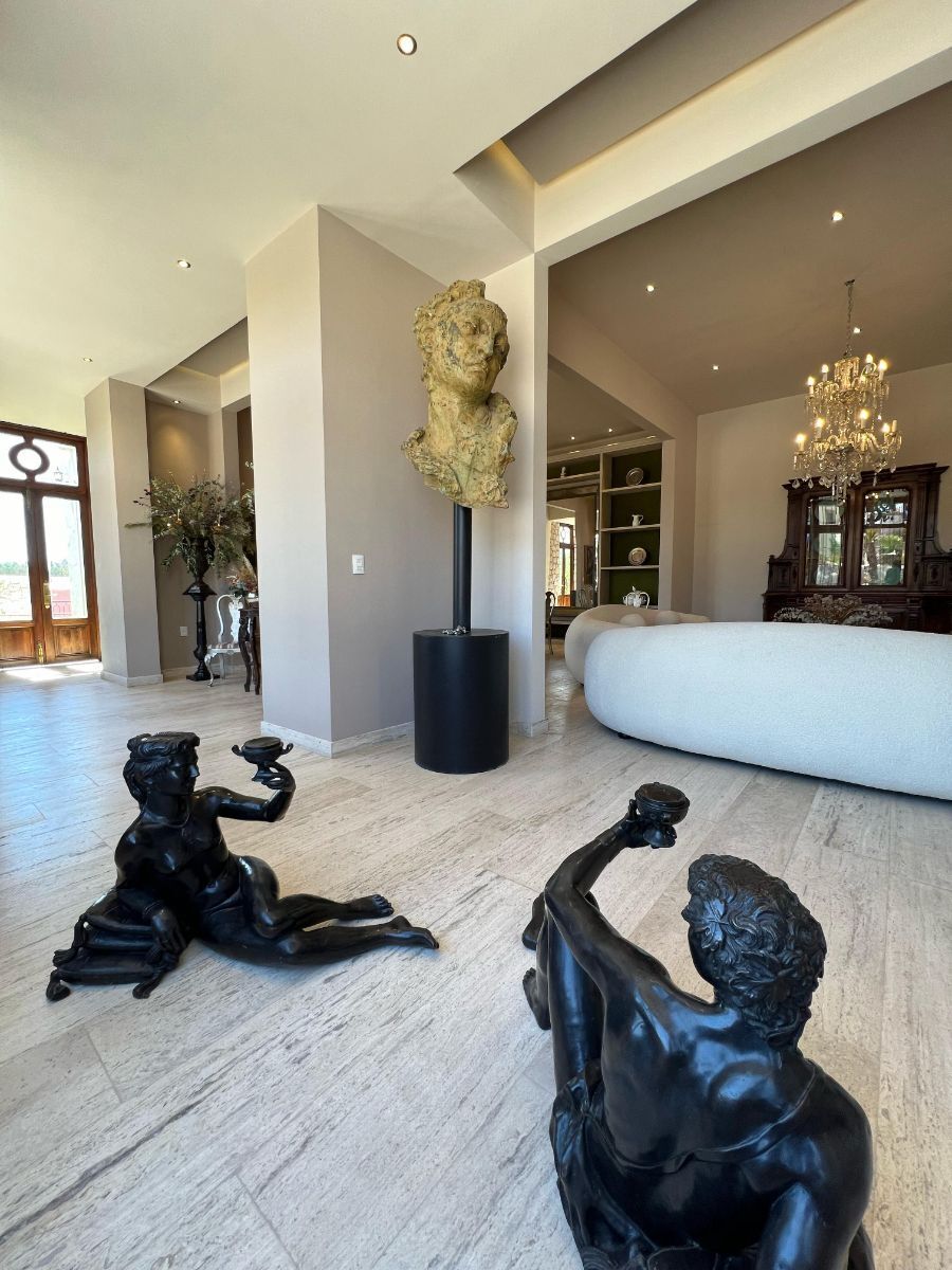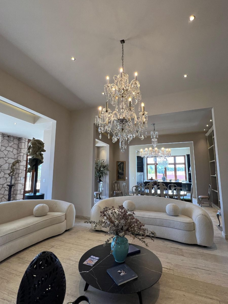 Grandes ventanas inundan el interior con luz natural, iluminando las líneas elegantes y la estética minimalista del hogar. Los techos altos añaden una sensación de amplitud, mientras que los acentos decorativos cuidadosamente seleccionados proporcionan calidez y carácter a cada habitación.