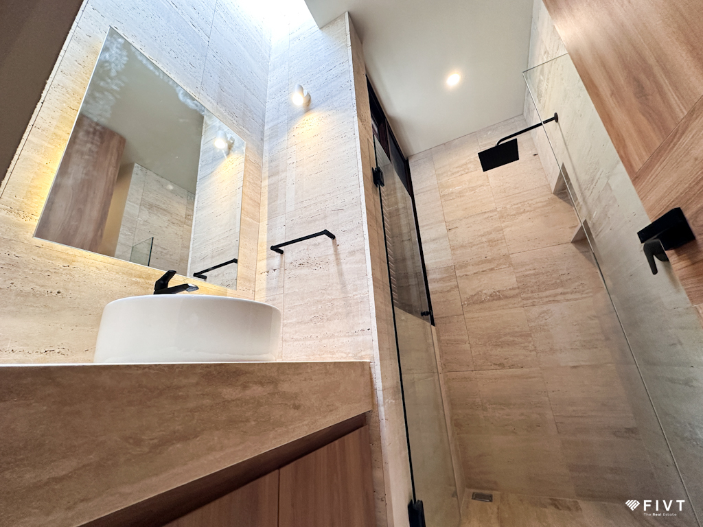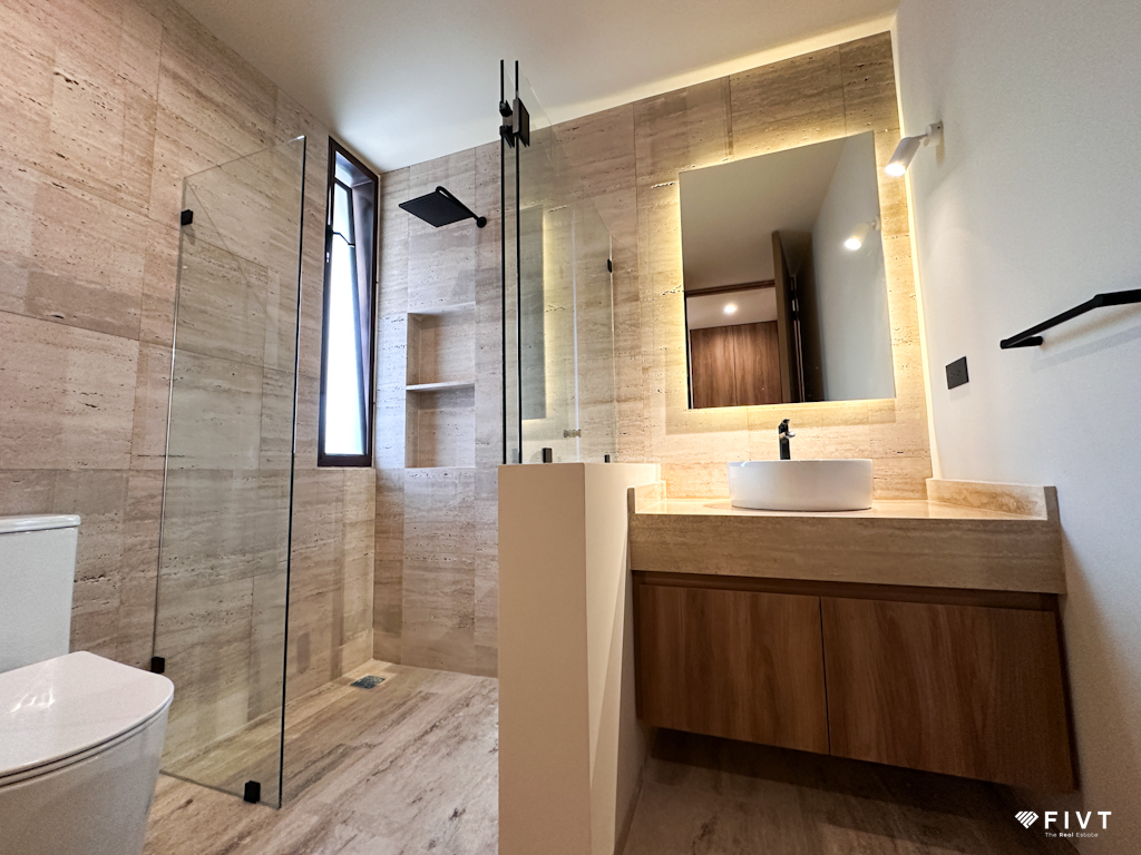 En planta alta, dos recámaras secundarias cada una con baño completo y clóset, luz natural y ventilación.