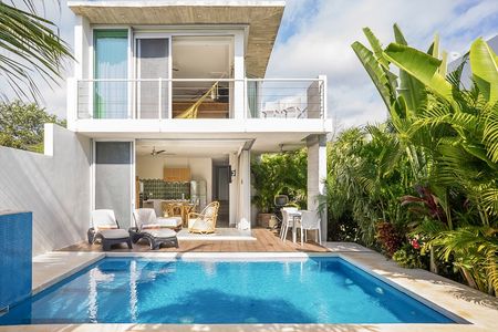 su maravillosa terraza con jacuzzi, conecta a senderos de áreas comunes donde disfrutarás albercas , cancha de tenis , área de juegos infantiles.