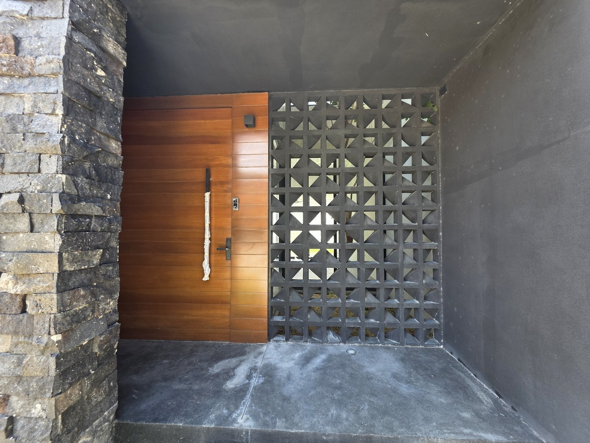 Acabados de primera calidad con carpintería de caobilla, mesetas de granito verde Ubatuba, aire acondicionado inverter marca Benelux, ventiladores, sistema de riego automatizado, video portero, cisterna 5,000 lt, equipo de filtración de alberca, preparaciones para paneles solares.