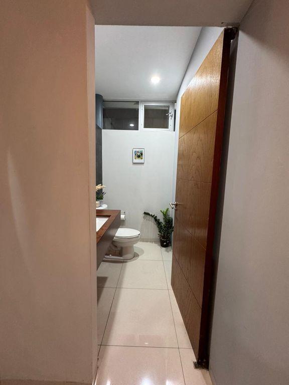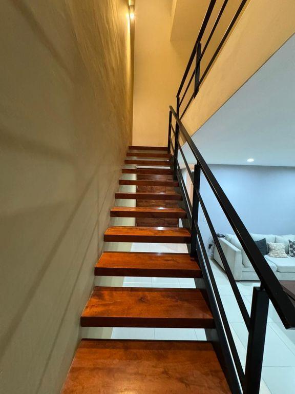 - Andar superior: 2 quartos, o principal com banheiro e closet, o outro compartilha um banheiro muito amplo com o escritório com possibilidade de ser um terceiro quarto, área de lavanderia com possibilidade de acesso para fazer um jardim na cobertura.