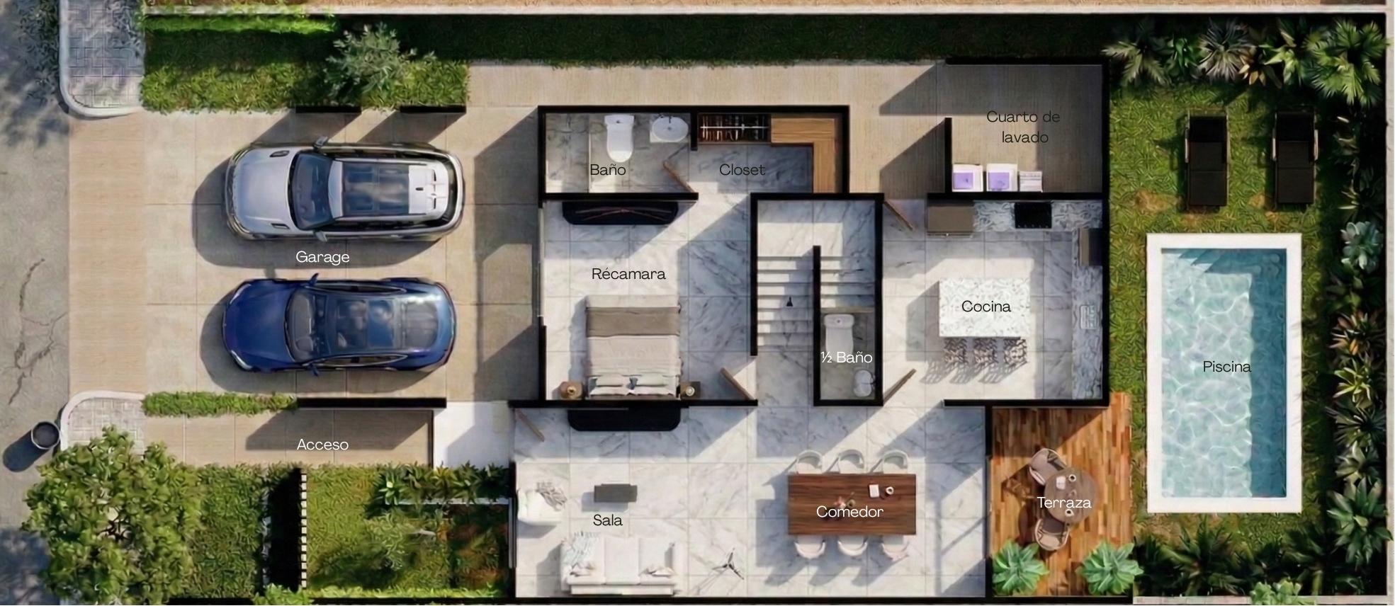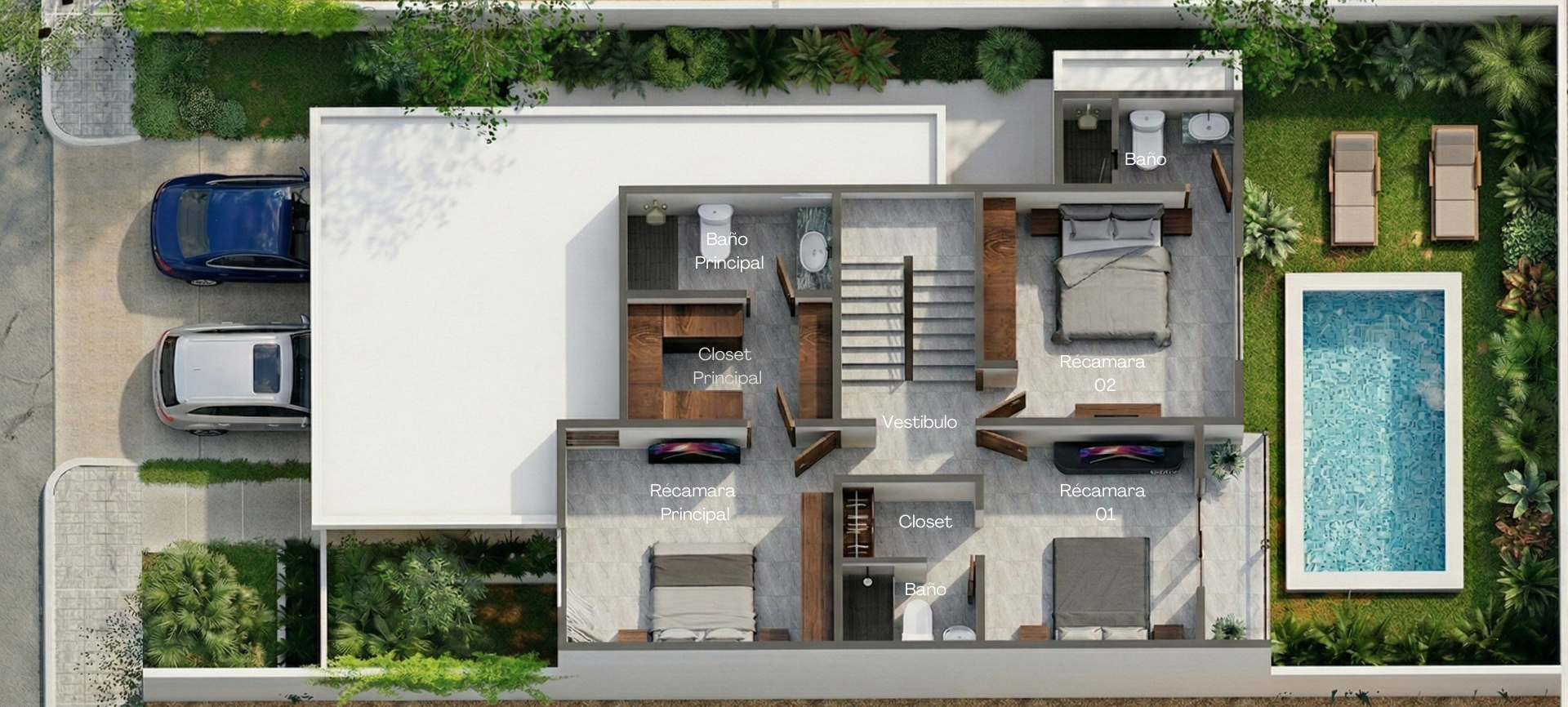 * Este é um render que pode variar em relação ao resultado real.*Residencia con 3 recamaras y alberca, en venta en Residencial Tamora Conkal.