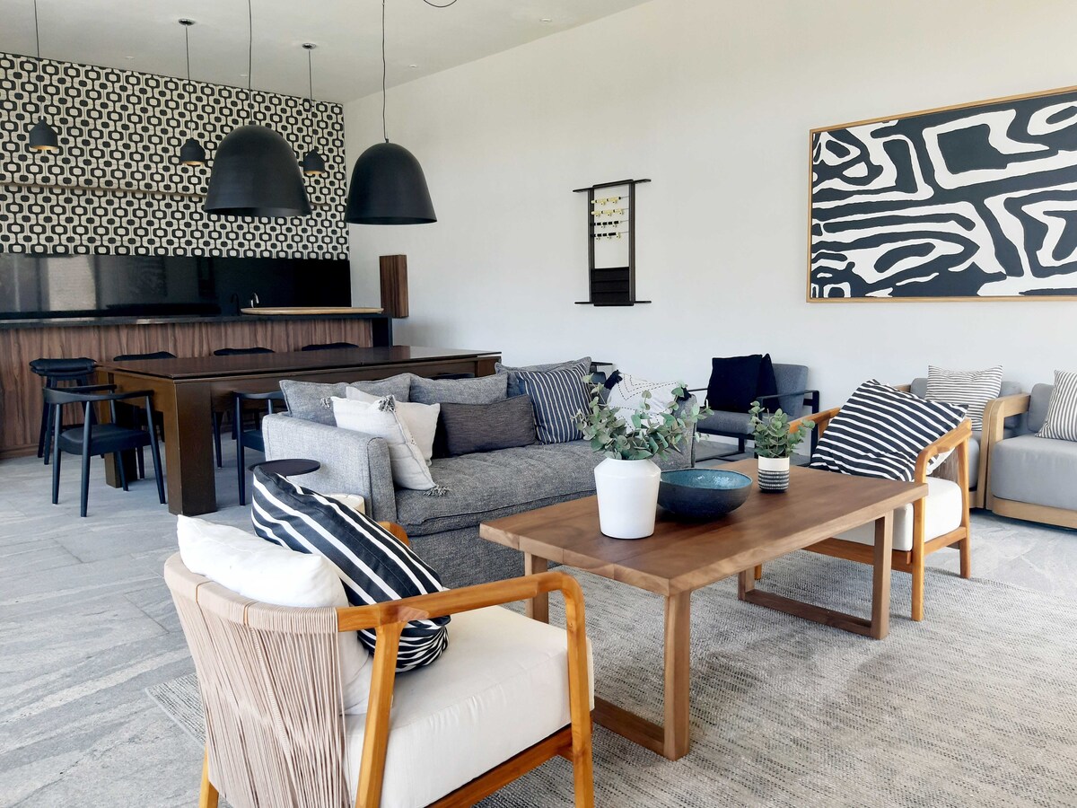 Linda e moderna residência com excelente projeto em 3 níveis; possui Roof Garden e acabamentos de luxo. Localizada dentro de um condomínio com piscina, academia, churrasqueiras, playground, salão de eventos e segurança 24/7. No andar térreo, possui um escritório com banheiro completo que pode servir como quarto extra, sala de estar e jantar, elegante cozinha totalmente equipada com bancada de granito e armários com acabamento de alto brilho, além de um lindo jardim interno. No segundo andar, possui 3 quartos, todos com banheiro e closet, o principal com duas pias e bancada de mármore. No terceiro andar, há um amplo Roof Garden com uma área fechada que pode ser sala de jogos ou quarto, pois possui um banheiro completo. O terraço tem pisos antiderrapantes. Excelente projeto e acabamentos de luxo em toda a casa, com belos tetos e iluminação indireta, marcenaria de parota, pisos de porcelanato, vidro temperado na escada, banheiros e acessórios da melhor qualidade. Além disso, conta com preparação para painéis, aquecedor solar e sistema de circuito fechado. Preço e disponibilidade sujeitos a alterações sem aviso prévio.Hermosa y moderna residencia con excelente proyecto en 3 niveles; tiene Roof Garden y acabados de lujo. Ubicada dentro de coto con alberca, gym, asadores, juegos infantiles, salón de eventos y vigilancia 24/7. En planta baja tiene estudio con baño completo que puede servir como recámara extra, sala-comedor, elegante cocina integral super equipada con barra de granito y alacenas con terminado al alto brillo, además tiene un lindo jardín interior. En segundo piso tiene 3 recámaras todas con baño y vestidor, la principal con doble ovalín y cubierta de mármol. En el tercer piso tiene un amplio Roof Garden con un área cerrada que puede ser sala de juegos o recámara ya que tiene un baño completo. La terraza tiene pisos antiderrapantes. Excelente proyecto y acabados de lujo en toda la casa, con hermosos plafones y luz indirecta, carpintería de parota, pisos de porcelanato, cristal templado en escalera, baños y accesorios de la mejor calidad. Además, cuenta con preparación para paneles, calentador solar y sistema de circuito cerrado. Precio y disponibilidad sujeto a cambios sin previo aviso.