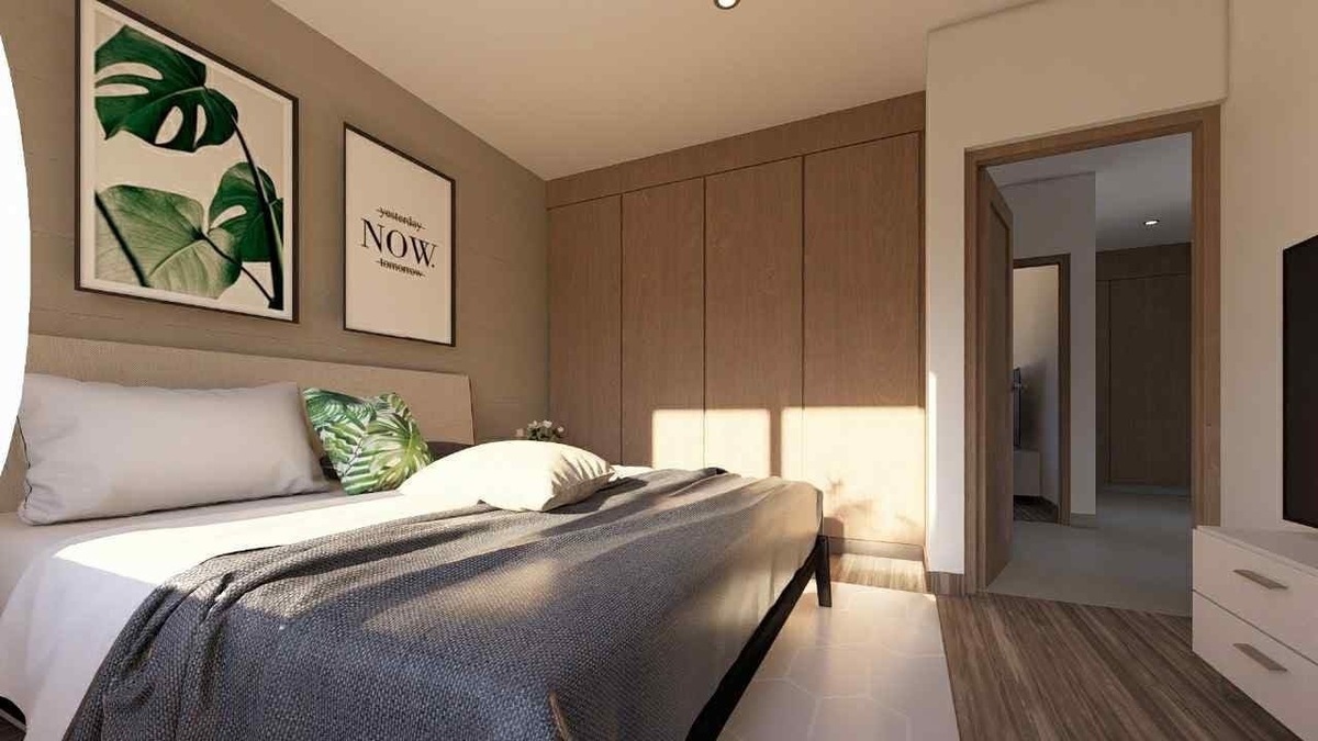 • Área de sala, cocina y comedor con puerta corrediza hacia el patio