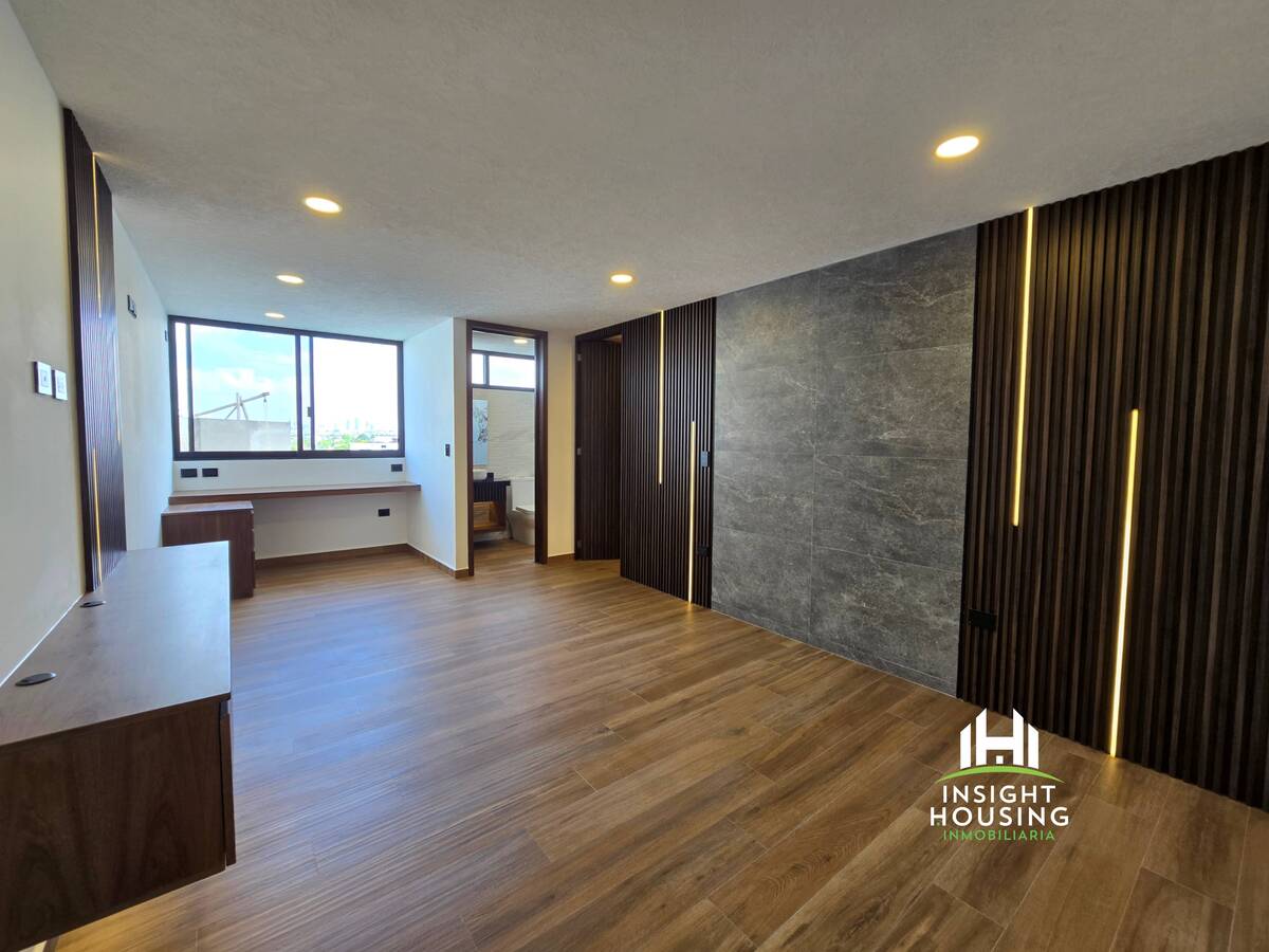 RECAMARA 3 CON MUEBLE DE TV Y ESCRITORIO, VESTIDOR CON ESPEJO DE CUERPO COMPLETO, BAÑO COMPLETO CON TORRE DE REGADERA.