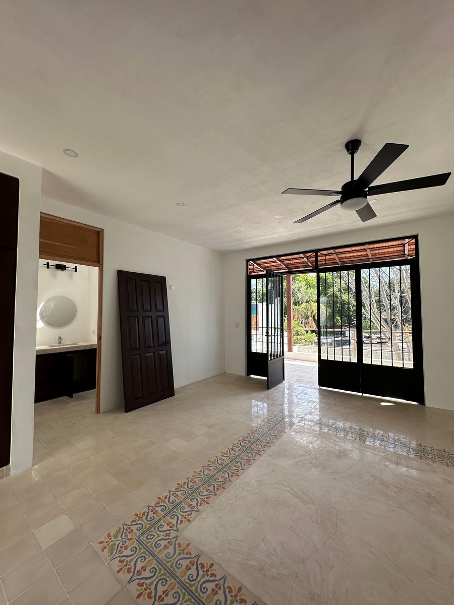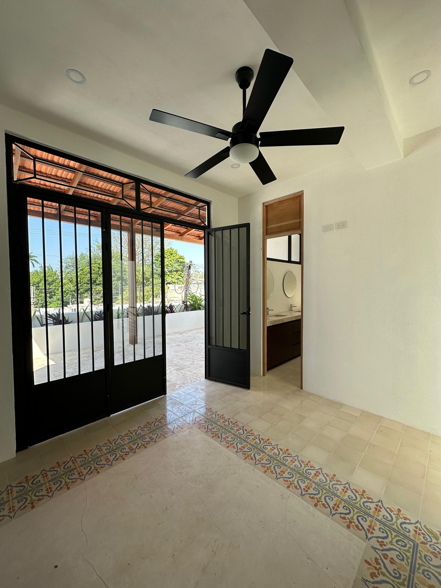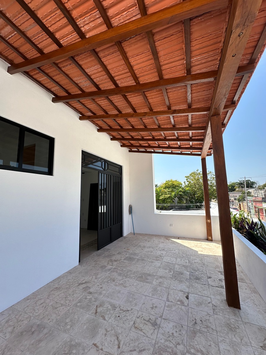 Recámara secundaria con closet, baño y terraza techada con tejaban.