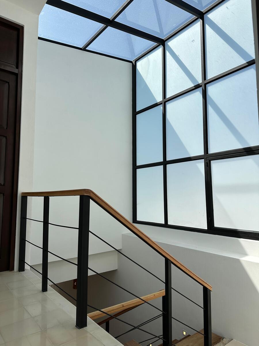 Puertas y ventanas de acceso principal en cedro con herrería de forja