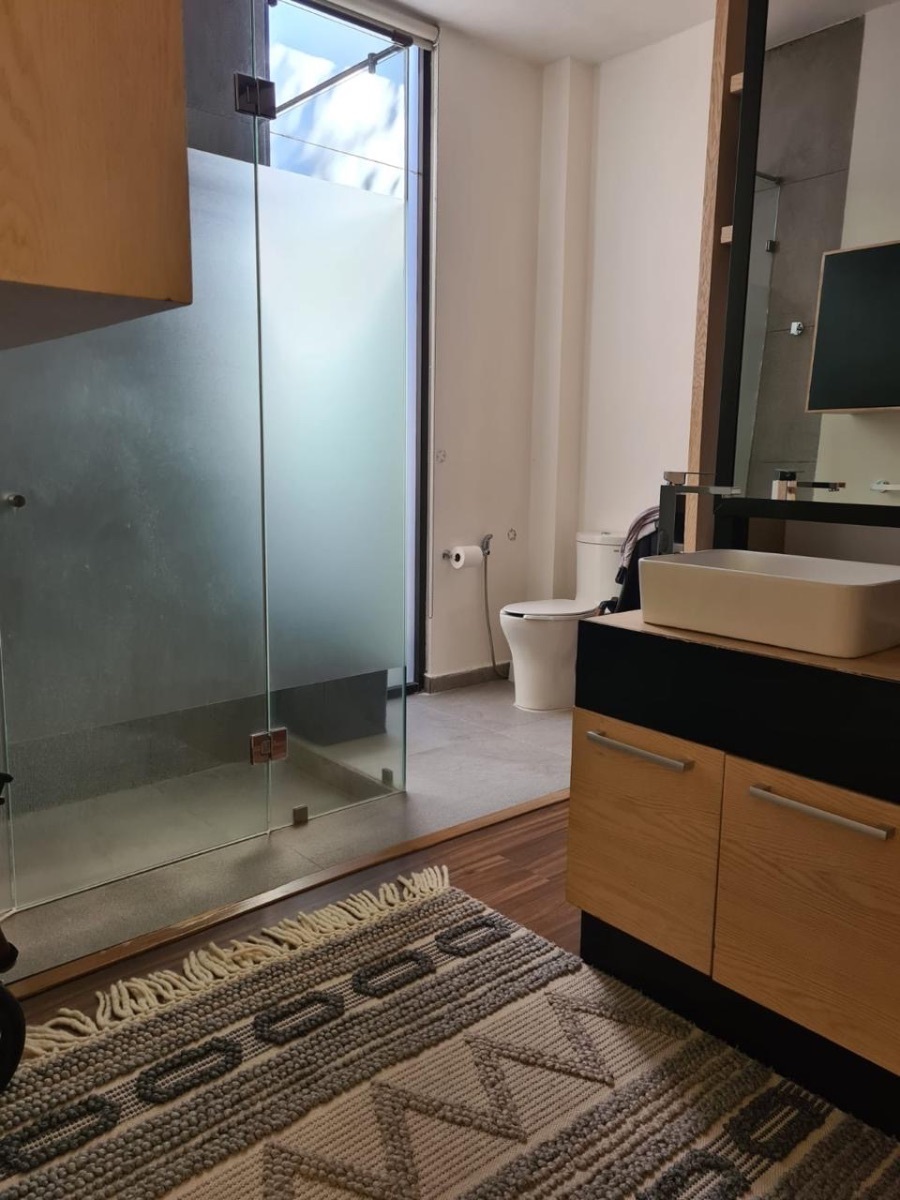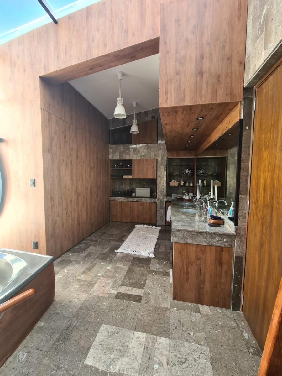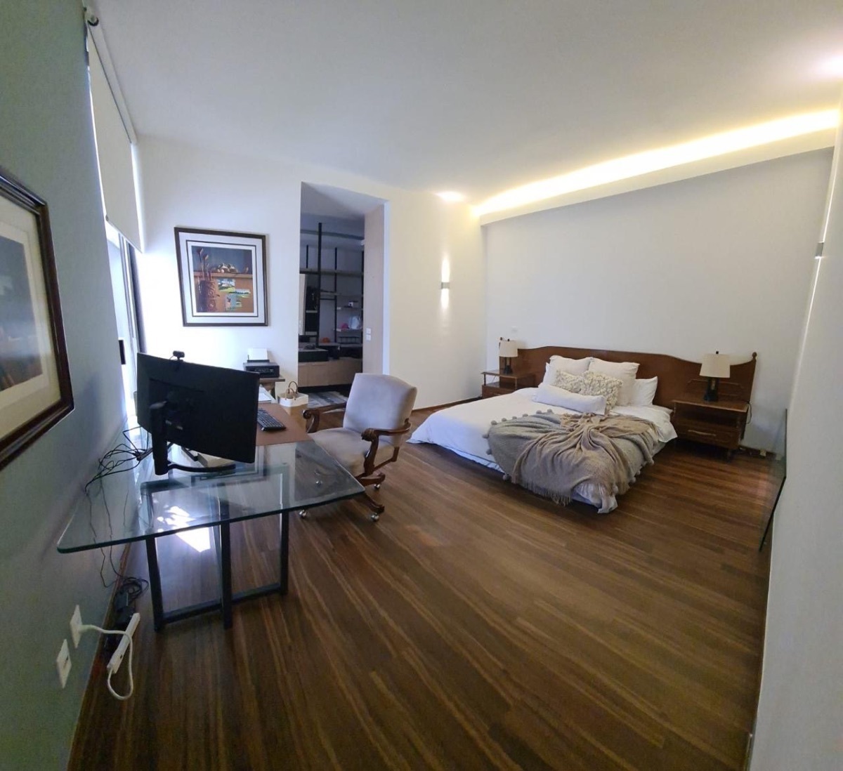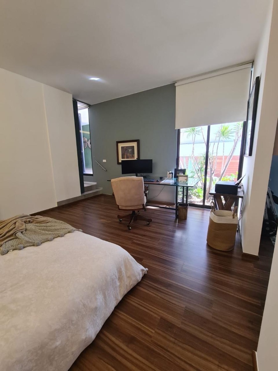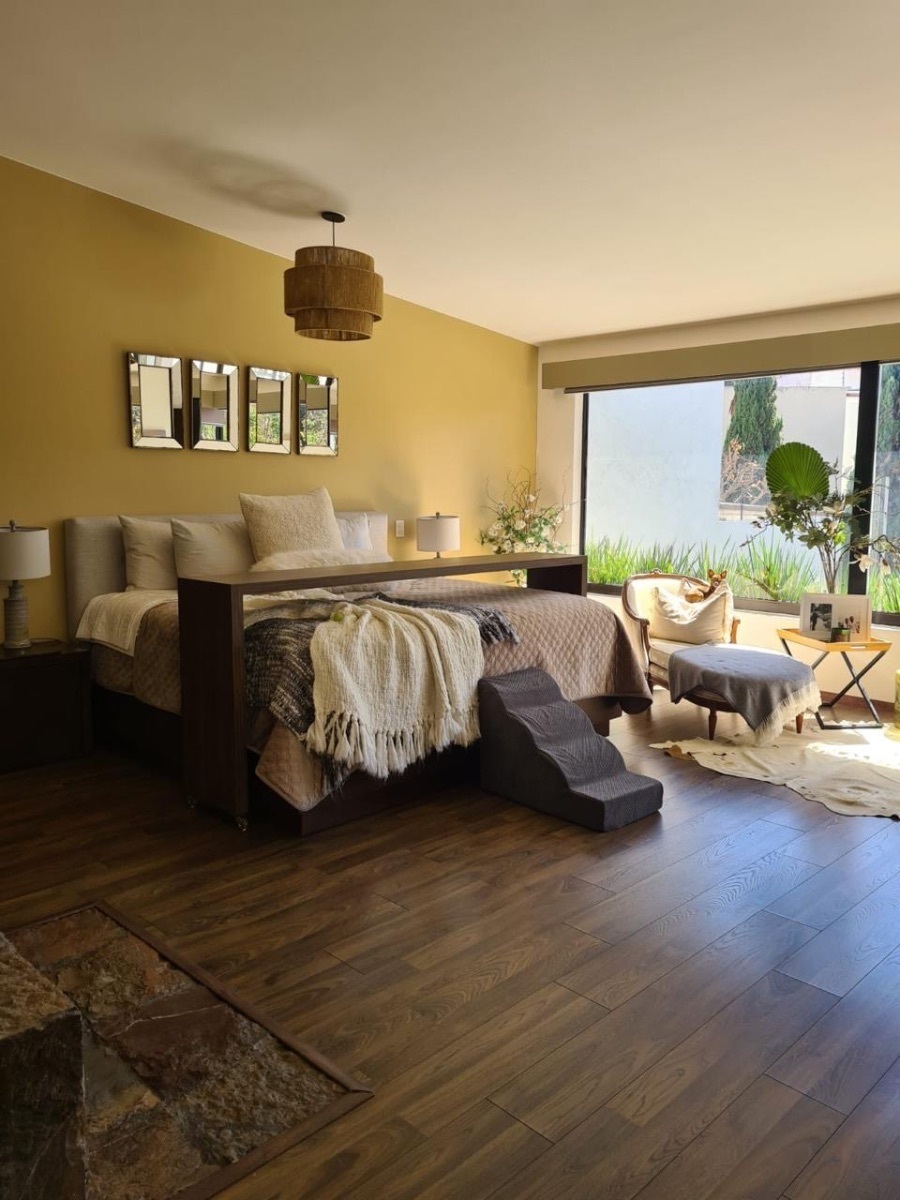 En este nivel (PB) se encuentra una recámara muy amplia con baño, puede ser un área independiente donde puedes alojar a tus visitas o puede ser un estudio u oficina.