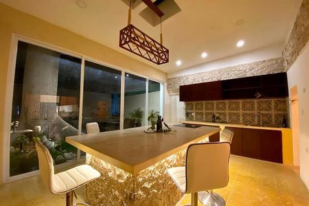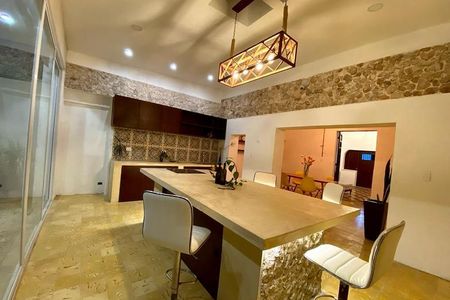 • Equipamiento: Iluminación en alberca, campana para estufa, parrilla de gas, cocina integral sin electrodomésticos, hidroneumático, calentador de gas, gas estacionario de 300 lts, escalera cubierta de mármol travertino Fiorito, canceles de vidrio templado en baños (un fijo y puerta abatible), barandal de vidrio templado en balcón trasero, barandal de vidrio templado en escalera.