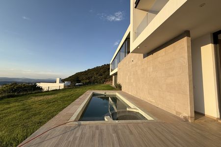 CASA RESIDENCIAL À VENDA NO CLUBE E DENTRO DO CAMPO DE GOLFE TRES MARIAS, MORELIA. Tem um terreno de 1.129 m2 e uma construção de 1.200 m2. Arquitetura moderna com acabamentos de luxo. No andar térreo, possui uma cozinha integrada de luxo equipada com acabamentos importados, ampla sala de estar e jantar com teto duplo, lavabo, despensa com pia, sala secundária, ampla varanda, jardim com piscina, banheiros na área da piscina com vapor, suíte principal muito ampla com vista para o jardim, banheiro completo de luxo com banheira, closet masculino e closet feminino com acesso direto ao segundo andar e garagem para 8 carros. No andar superior, possui 4 amplas suítes com closet e banheiro completo cada uma e ampla varanda, sala de TV, área de ginástica com vista para o jardim, espaço para elevador e área de lavanderia equipada com móveis de branco. Acabamentos de alta qualidade e importados.