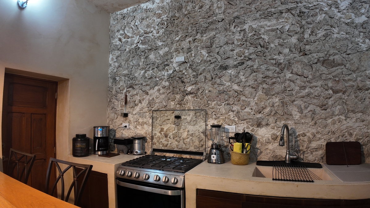 Esta majestosa residência foi completamente restaurada em 2023, preservando suas paredes de alvenaria, tetos duplos e todos os elementos distintivos da arquitetura colonial yucateca. Cada detalhe reflete a tradição e a elegância local, integrando materiais originais e autóctones como Chukum, pisos de pasta, portas de cedro restauradas com mais de 100 anos, bem como gárgulas e pias de pedra natural da região.