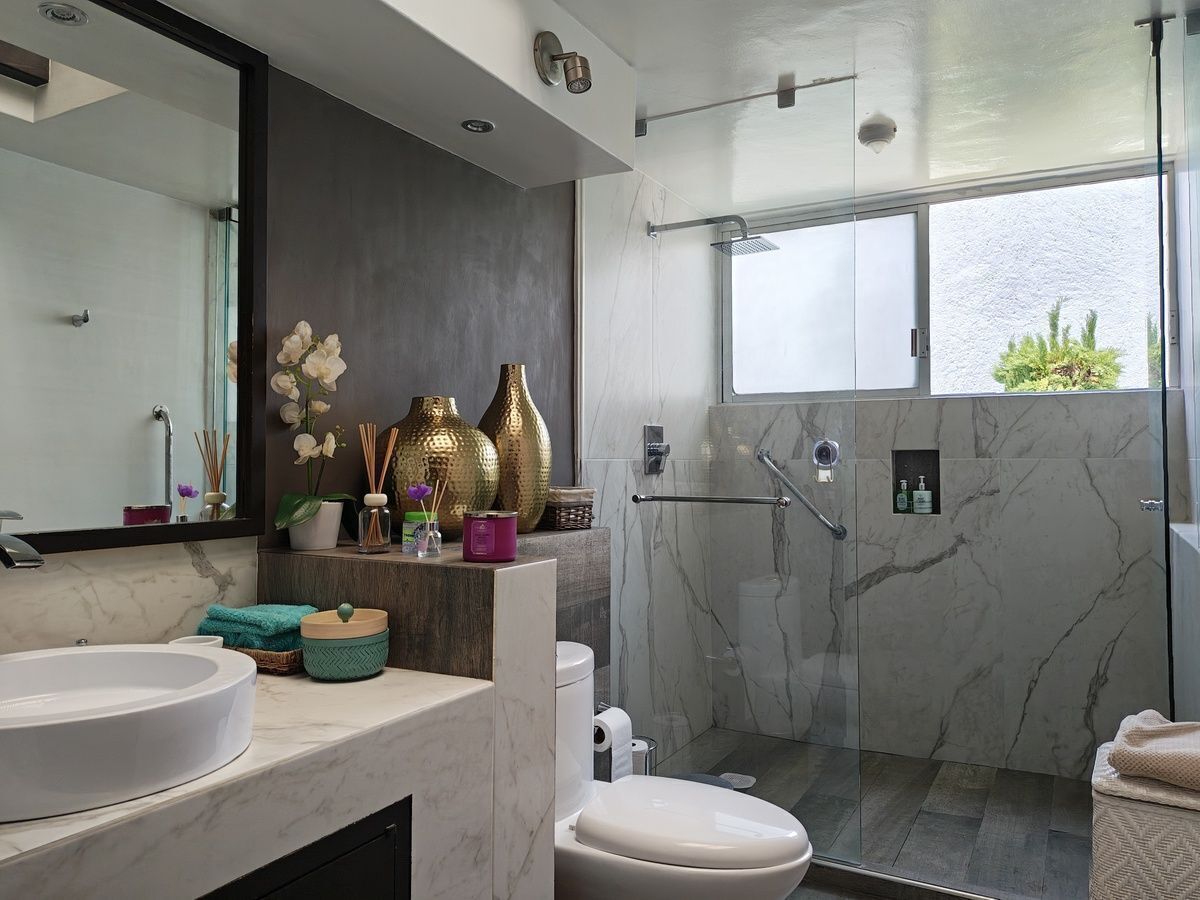 A casa tem 4 quartos, cada um com banheiro, um quarto está no andar térreo, ideal para uma pessoa idosa, tem um lavabo, 1 quarto de serviço com banheiro próprio, 4 vagas de estacionamento, 2 depósitos.Hermosa casa en fraccionamiento privado cuenta con vigilancia las 24 hrs, zona de confort y lujo a 10 minutos de la supervía poniente, cerca de colegios de prestigio Green Hills, Williams y universidades Anáhuac Sur o Tec de Monterrey.