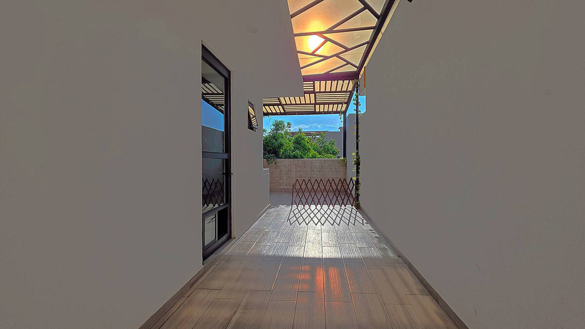 Planta baja: Garage techado para 2 autos, área de lavado y pequeño patio trasero.