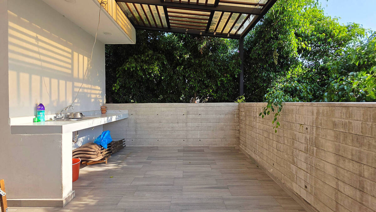 Último nível: Jardim na cobertura com pérgola e churrasqueira.