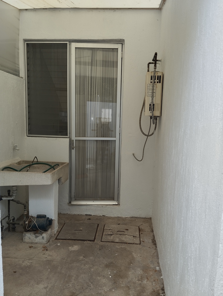 Planta Baja, cochera para dos autos, sala, comedor, baño de visitas, cocina integral, patio de lavandería y pequeño jardín.