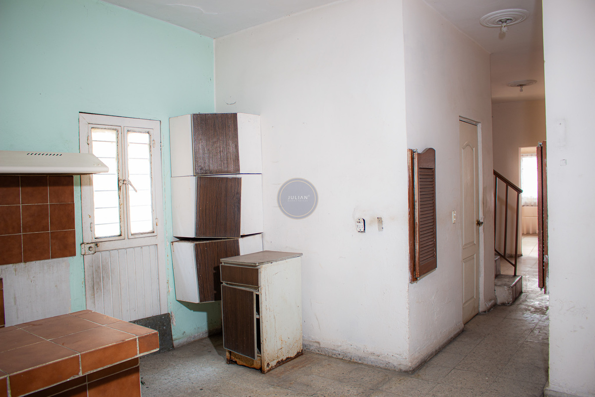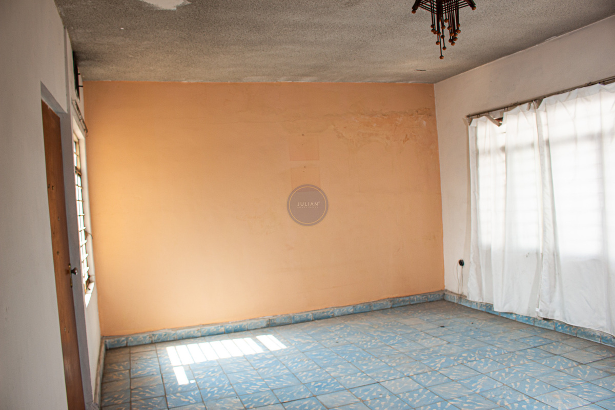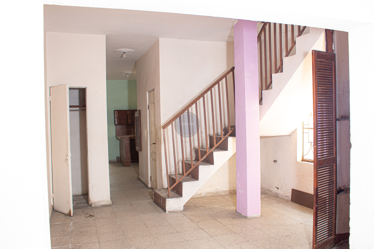 Primer planta cuenta con 1 estacionamiento sobre calle, espacio de sala y antecomedor, 1 baño completo, pasillo lateral con entrada a cocina y cuarto del fondo.