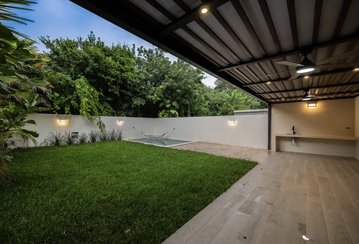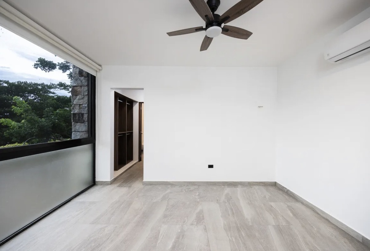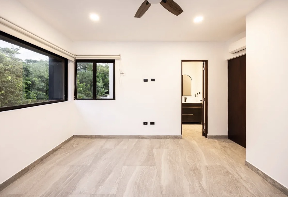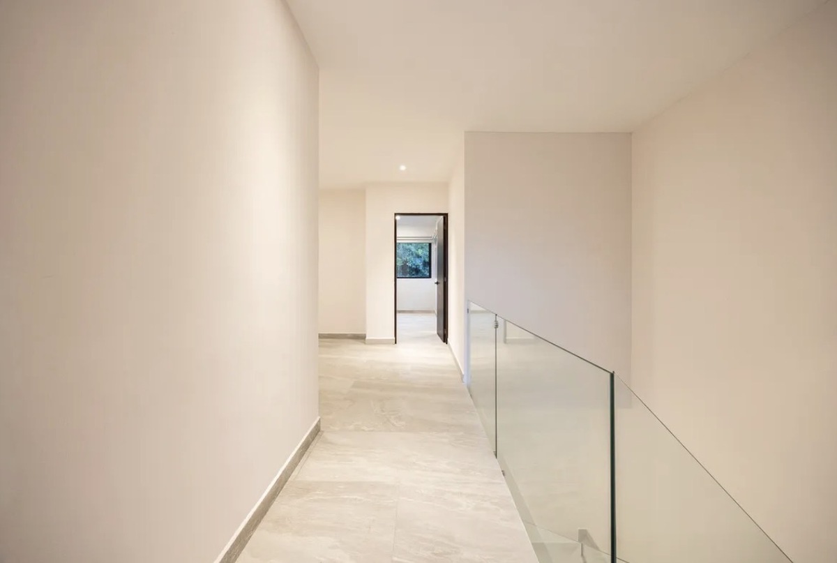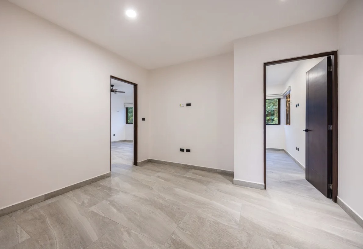 Su distribución aprovecha la luz natural y la ventilación cruzada, integrando las áreas sociales con el jardín y la piscina privada.