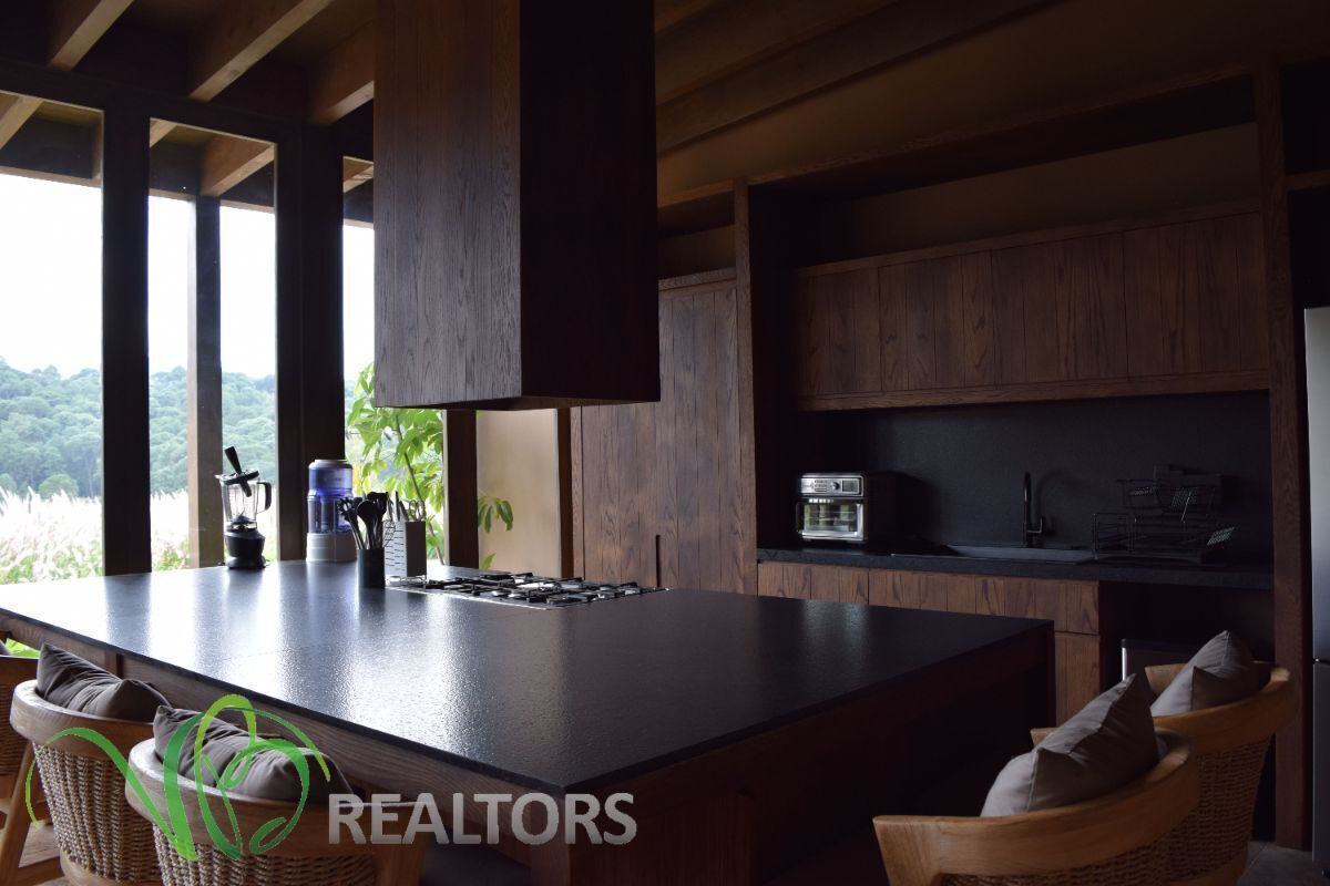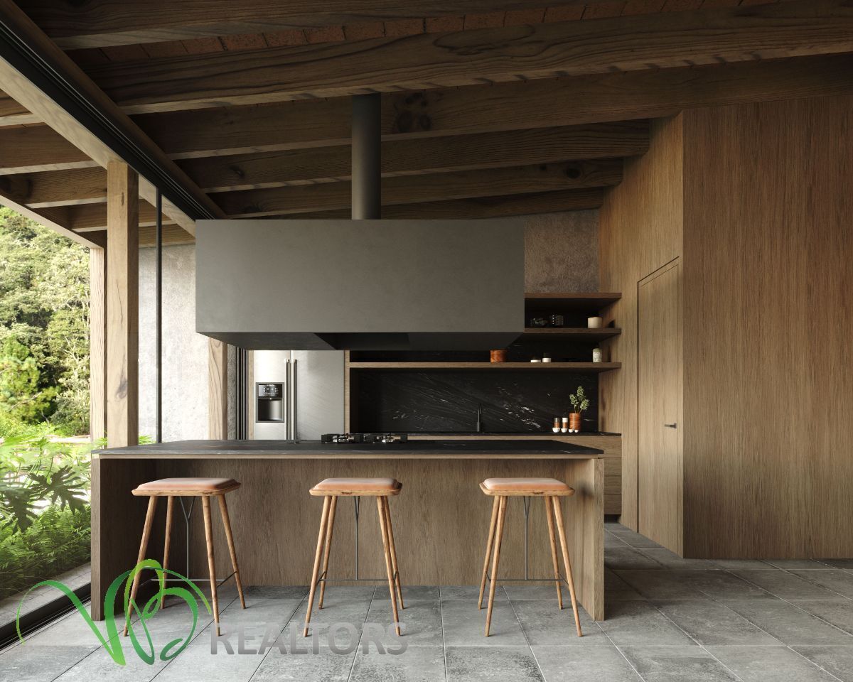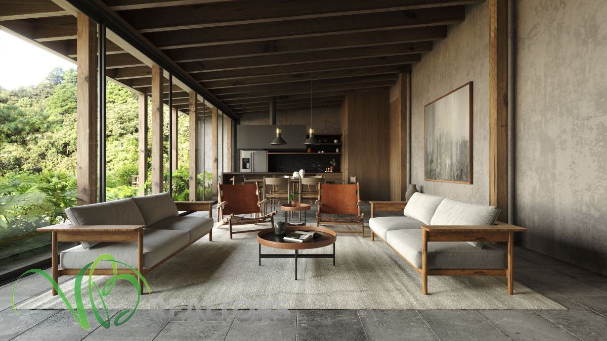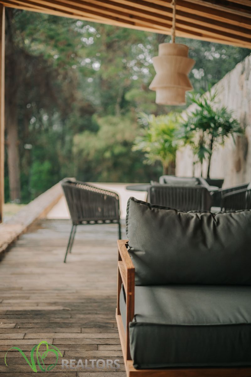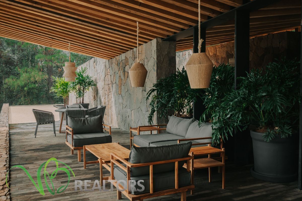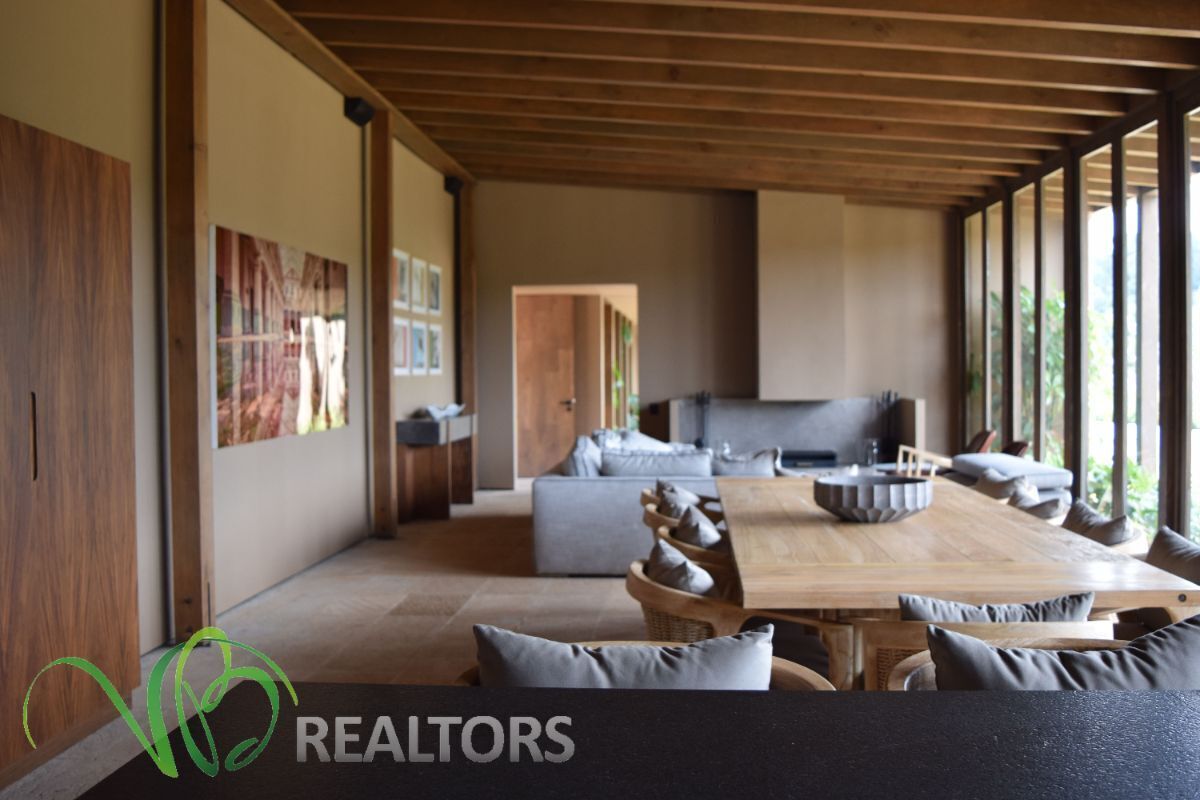 • Sala, comedor interior y exterior, cocina abierta con isla, family con jacuzzi, chimenea, cuarto de T.V., terrazas y bodega