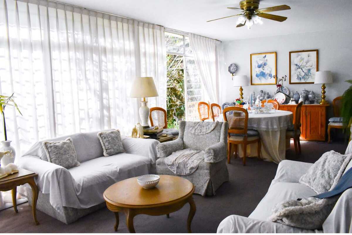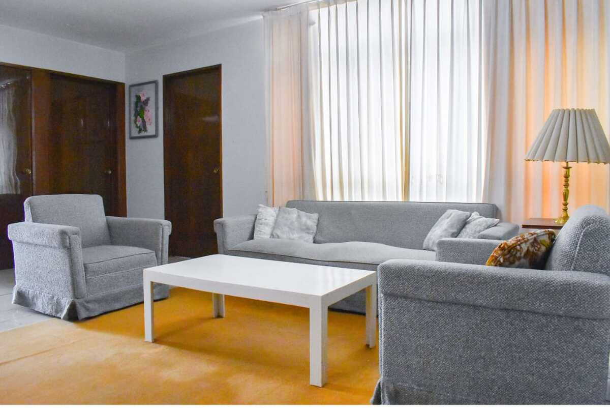 Sala amplia con vista al jardín, comedor independiente, cocina integral, estudio, recibidor, cuarto de servicio con baño, cuarto y patio de lavado, terraza y jardín de gran tamaño.