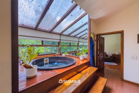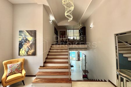 A sala principal, com tetos altos e grandes janelas, inunda os espaços com luz natural, criando uma atmosfera quente e aberta em toda a casa. Os quartos, igualmente espaçosos, contam com tetos elevados que amplificam a sensação de espaço e conforto. Da propriedade, desfruta-se de uma vista direta para o green do buraco 6.