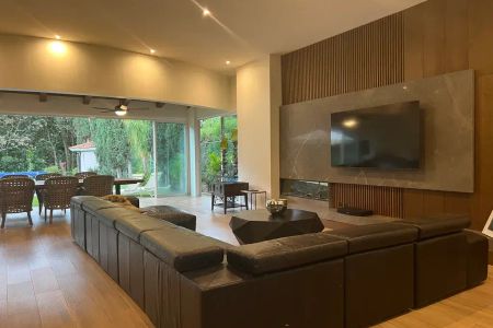 El exterior área de día es igualmente imponente, con una gran alberca, un salón de juegos ideal para entretenimiento, y un extenso jardín que rodea la casa, perfecto para disfrutar del aire libre. Esta es una propiedad que equilibra a la perfección modernidad, elegancia y funcionalidad, todo en uno de los entornos más exclusivos.