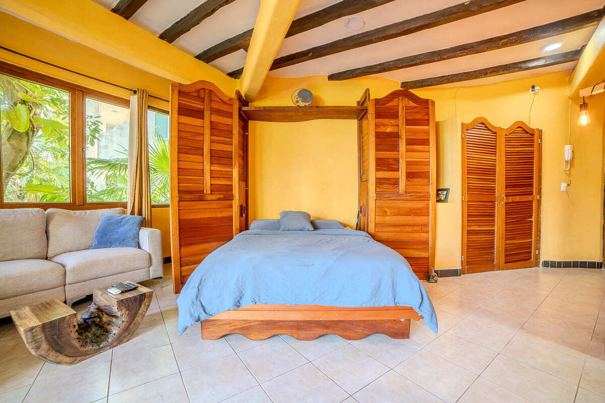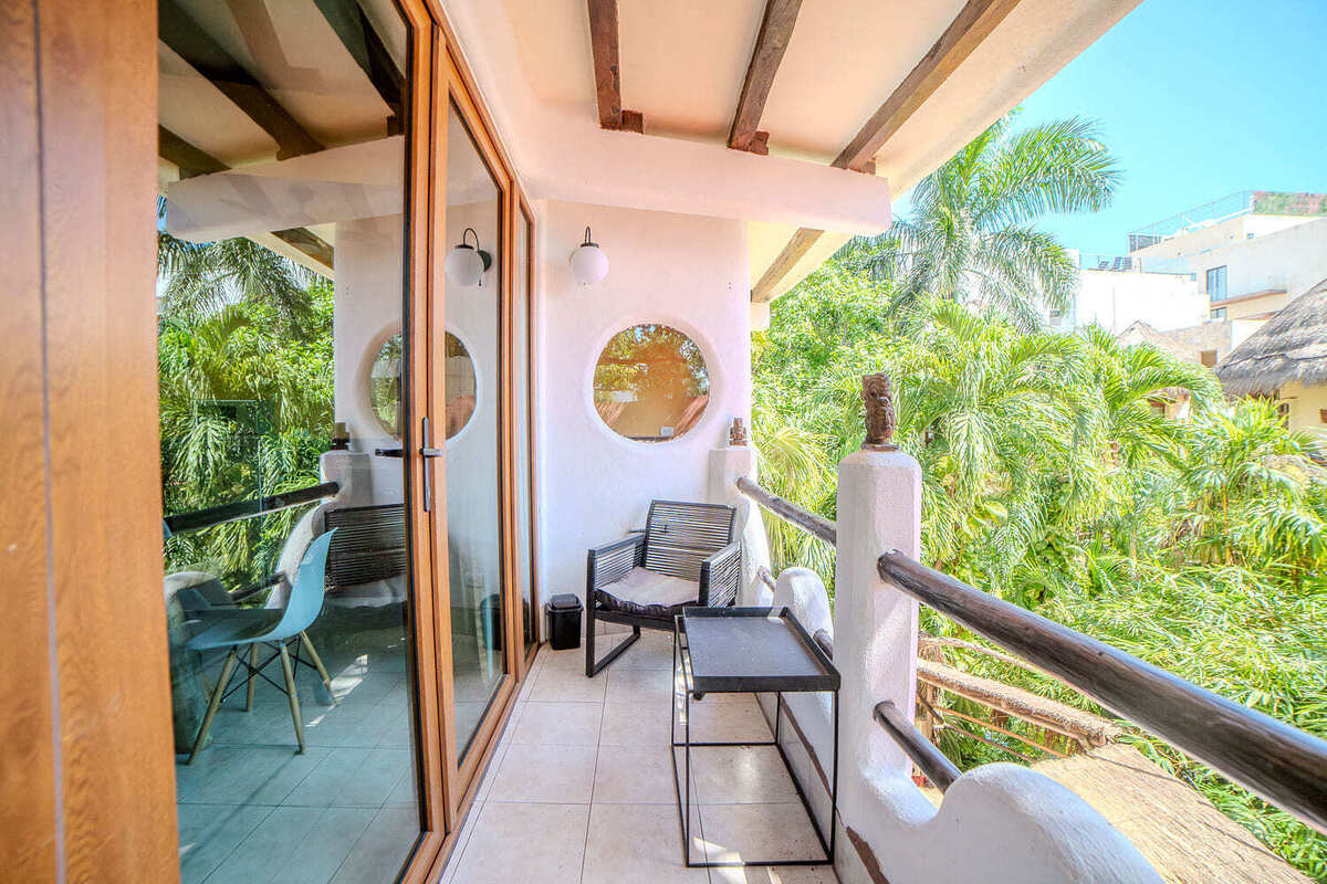 This cozy condo is built around a beautiful cenote and surrounded by lush greenery, allowing you to experience nature right at your doorstep. Residents have access to a small shared rooftop area, perfect for relaxing and enjoying the views. The building includes space for bicycles, providing a convenient way to explore the surroundings.