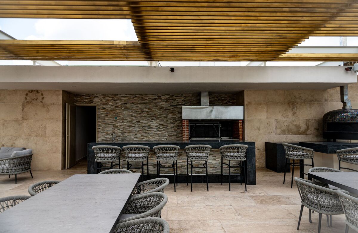 Churrasqueira no telhado com bar